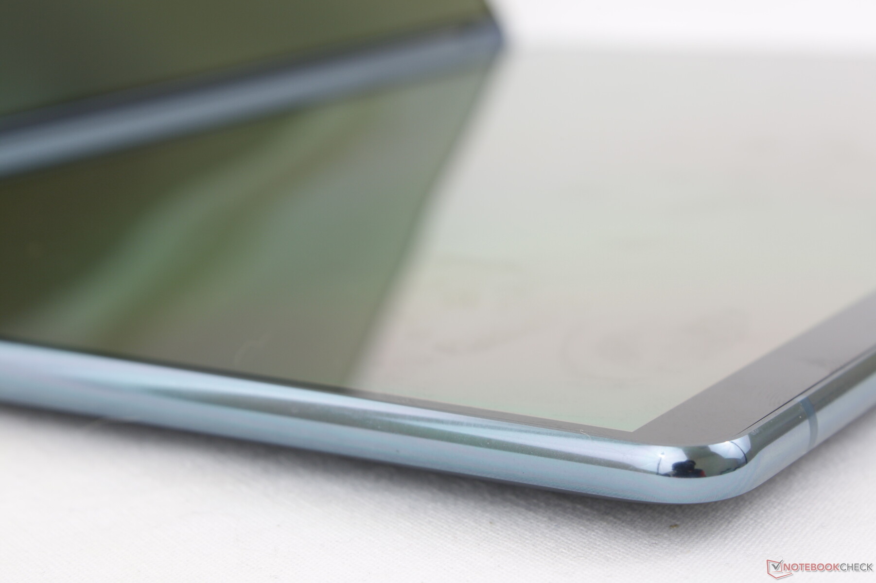 Die Verarbeitung des Gehäuses ist sehr überzeugend. In der Praxis bedeutet dies, dass es kaum Spiel für Verwindungen gibt. Außerdem ist die gesamte Verarbeitung besser als erwartet, was vor allem auf die fehlenden Einzelteile des physischen Keyboards und des Clickpads zurückzuführen ist. Bei Druckausübung auf die Gorilla-Glas-Touchscreens gibt keines nach. Das Scharnier ist ebenfalls gut verarbeitet und weist keine Ungleichmäßigkeiten auf. Wir sind echt von der Qualität und dem Design überrascht, wenn man bedenkt, dass es sich um ein neues Produkt der ersten Generation handelt.