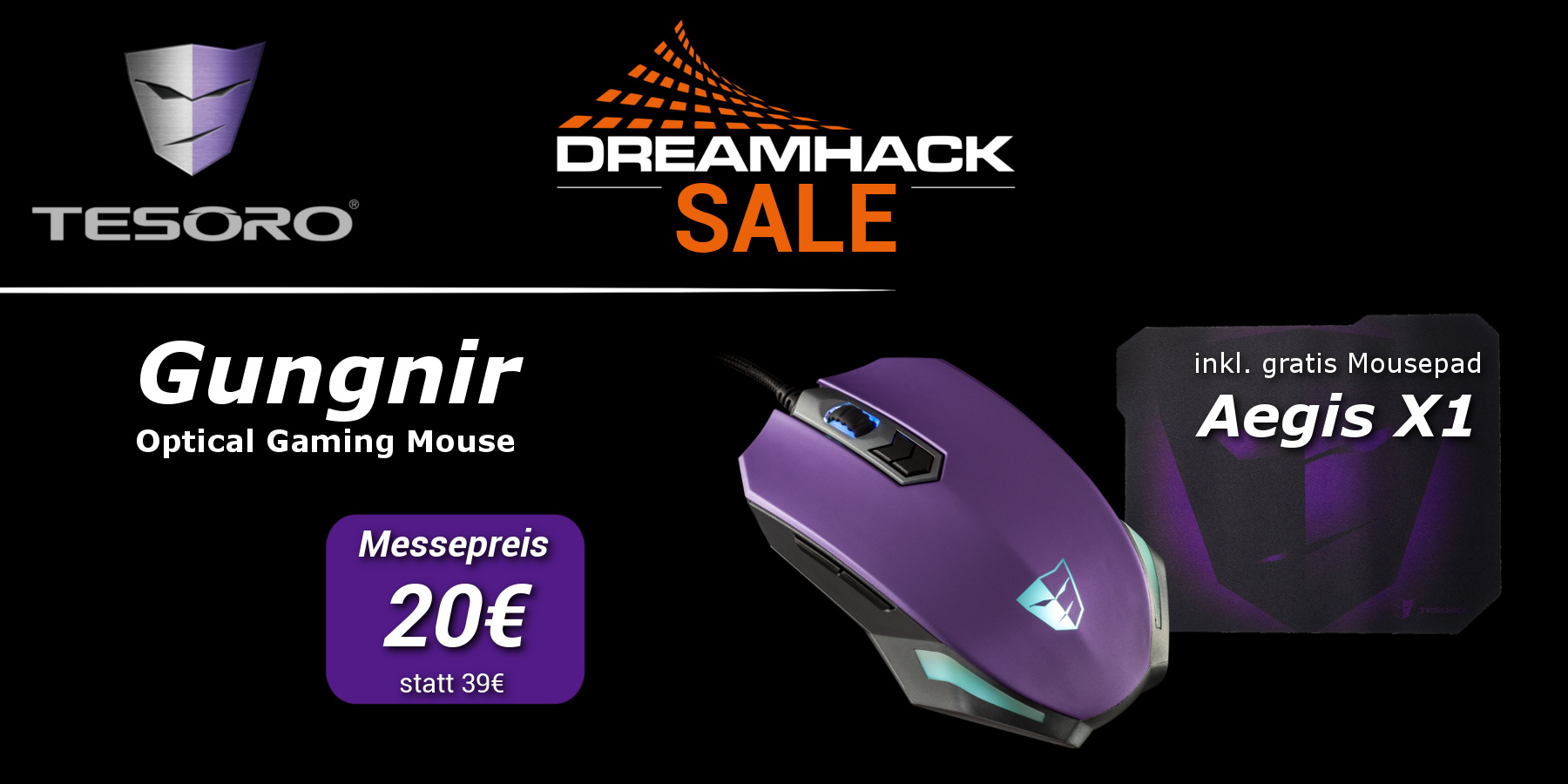 Tesoro zeigt auf der DreamHack neben seinen aktuellsten Produkten auch die brandneuen Tesoro Tuned In-ear Pro Gaming Headphones. Weiterhin besteht die Möglichkeit an zwei speziellen Gaming-Tischen die Tesoro Produkte direkt einmal in der Praxis einem Test zu unterziehen. Zusätzlich nimmt der Hersteller die Veranstaltung auch zum Anlass, um einen großen Sonderverkauf zu starten! Am Tesoro-Stand in Halle 5 Booth IN4 gibt es für Gamer einige Produkte zu absoluten Schnäppchenpreisen. Wichtig: Für alle Angebote gilt solange der Vorrat reicht! Hier die Übersicht: