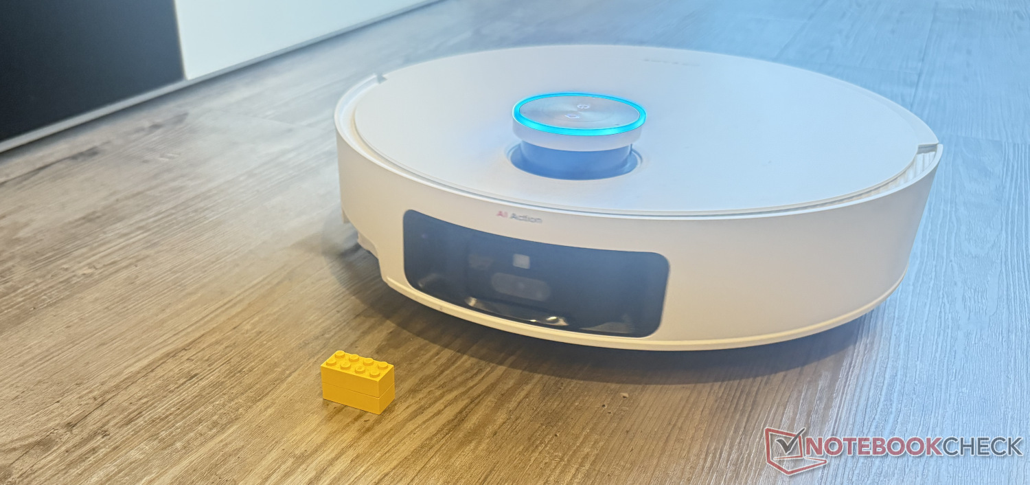 Die Hinderniserkennung über die Kamera und Co in der Gerätefront hat im Test weitestgehend gut funktioniert. Große Hindernisse stellen wenig überraschend kein Problem dar. Ein zusammengerolltes Kabel hat der Roboter mal erkannt, mal erst einige Zentimeter vor sich hergeschoben. Einen einzelnen 4x2-Klemmbaustein hat (wie bisher nahezu jeder andere Saugroboter im Test) auch der Dreame X50 Ultra Complete nicht "gesehen", zwei übereinandergestapelte hingegen schon. Der Endgegner bleiben aus Schuhen heraushängende Schnürsenkel, die weiterhin eine Gefahr darstellen.