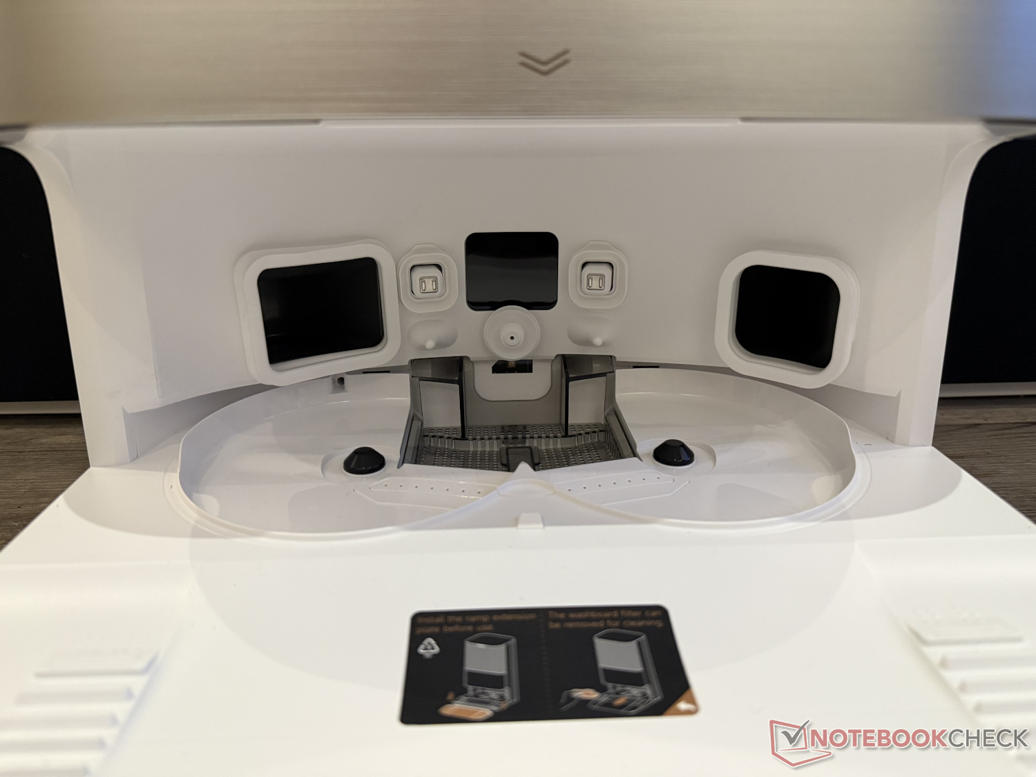 Beeindruckend ist das ProLeap System. Es sieht spektakulär aus, wenn sich der Saugroboter mit seinen Beinen aufbockt und so vom Boden erhebt. Bis er dies das erste Mal getan hat, benötigte es im Test des Dreame X50 Ultra Complete aber etwas Bastelei. Auf ein 15 mm hohes Brett als Testhürde ist der Roboter auf die unsanfte und klassische Art und Weise ohne ProLeap hinaufgerumpelt, wie es Saugroboter bis zu einer gewissen Höhe seit Jahren können. Ein 2,5 cm hohes Brett als vorgegaukelter Höhenunterschied hat er hingegen zunächst ständig umfahren.