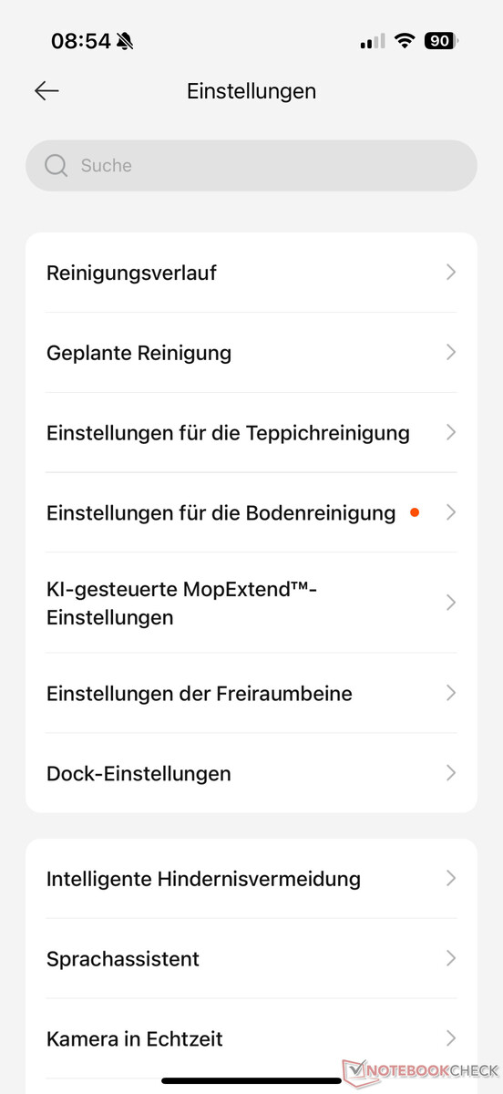 Abgerundet wird die App neben der Möglichkeit für Live-Video von zahlreichen Einstellungen, mit denen der Roboter auf die eigenen Bedürfnisse angepasst werden kann. Beispielsweise seien hier verschiedene Optionen bei der Reinigung (z. Verhalten der Wischmopps bei Teppich, automatische Nachreinigung, Reinigung in Bodenrichtung) sowie der Station (z. B. intelligentes Mopp-Waschen, Wassertemperatur, Dauer der Trocknung uvm.) genannt.