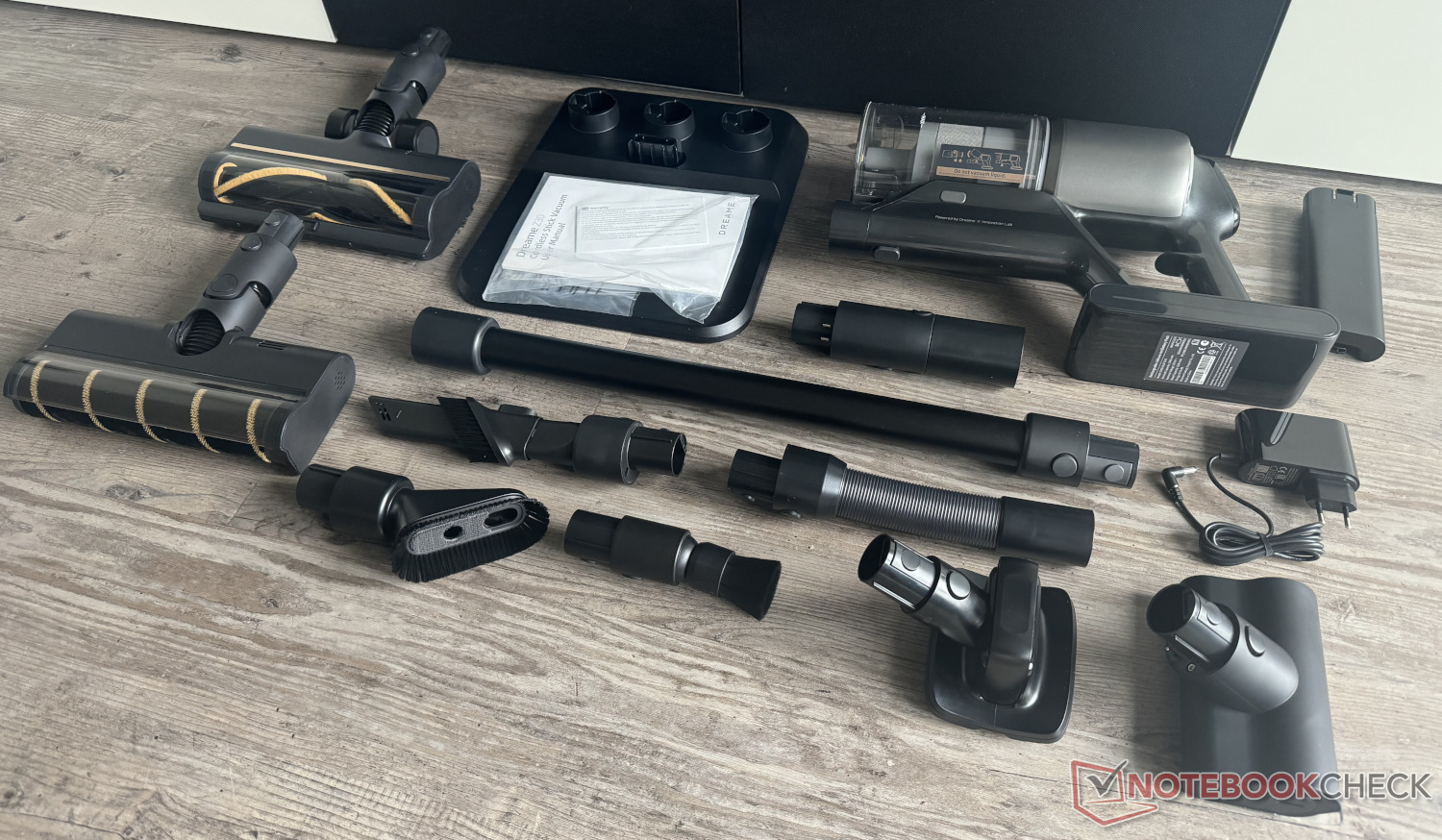 Der neue Dreame Z30 wartet mit einer gehobenen Ausstattung auf und kommt mit einem riesigen Lieferumfang. Neben zwei Hauptaufsätzen für die klassische Bodenreinigung mit verschiedenen Bürsten für nahezu randloses Saugen sowie praktischer Beleuchtung, dank der sich der Schmutz auf dem Boden viel besser sehen und so zielgerichtet beseitigen lässt, liegen noch diverse weitere Teile bei.