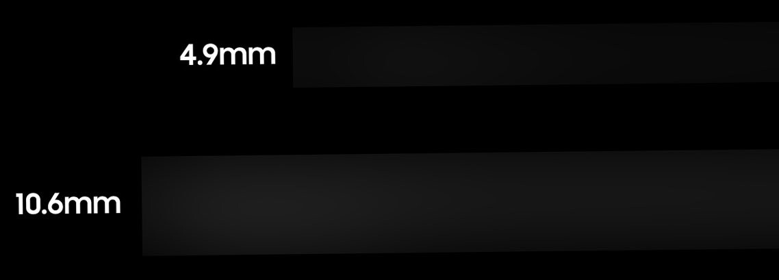 Demnach konnte Samsung die Galaxy Z Fold 6 Special Edition im Vergleich zum regulären Modell von 5,6 mm Dicke im geöffneten beziehungsweise 12,1 mm im geschlossenen Zustand auf 4,9 mm geöffnet und 10,6 mm geschlossen abspecken, immerhin eine Reduktion von etwa 12,1 Prozent bei gleichzeitig steigenden Displaygrößen (8 Zoll innen, 6,5 Zoll außen). Das gelingt Samsung allerdings teils nur durch den Verzicht auf die Digitizer-Schicht, die den Einsatz des S-Pen ermöglicht. Im Vergleich zum aktuellen Rekordhalter Honor Magic V3 mit 4,4 mm respektive 9,2 mm Dicke inklusive Stift-Bedienung auf beiden Displays ist das noch nicht zwingend Grund zur Freude für die Samsung-Techniker.