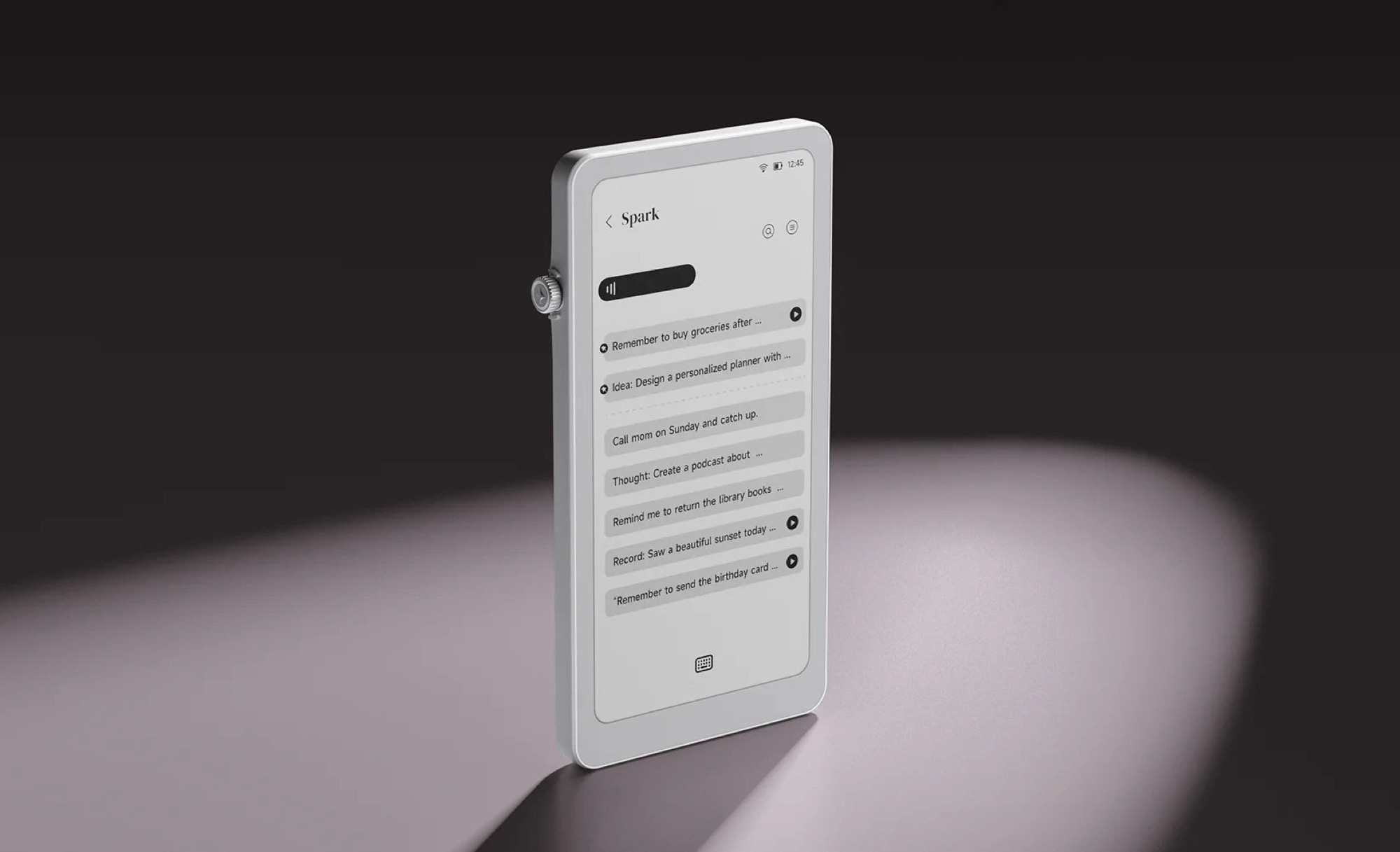 Die minimalistische Benutzeroberfläche stellt E-Books, Musik und Notizen ins Zentrum, bietet aber auch Zugriff auf einen AI-Assistenten. Durobo Krono basiert auf einem 6,13 Zoll großen E Ink Carta 1200 Display, das eine Pixeldichte von 300 PPI erzielt, und ist damit deutlich kleiner als ein Amazon Kindle (ca. 109 Euro auf Amazon). Das Display besitzt eine Frontbeleuchtung, deren Helligkeit über das Smart Dial an der linken Seite angepasst werden kann. Wird das Smart Dial gedrückt, kann direkt die Aufnahme eines Sprachmemos oder der AI-Assistent gestartet werden.