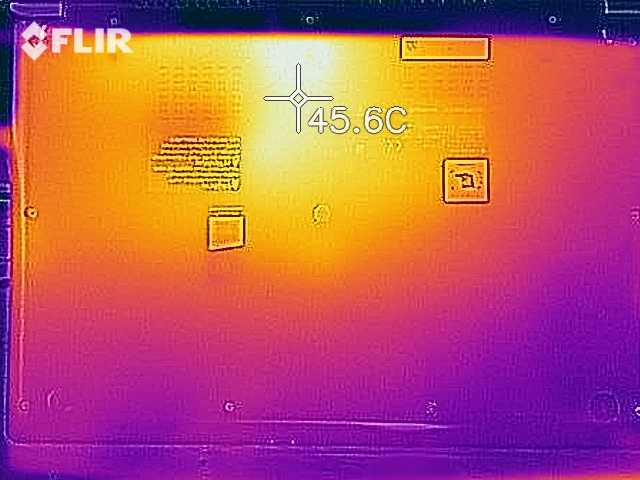 (+) Die Handballen und der Touchpad-Bereich sind mit gemessenen 30.1 °C kühler als die typische Hauttemperatur und fühlen sich dadurch kühl an.