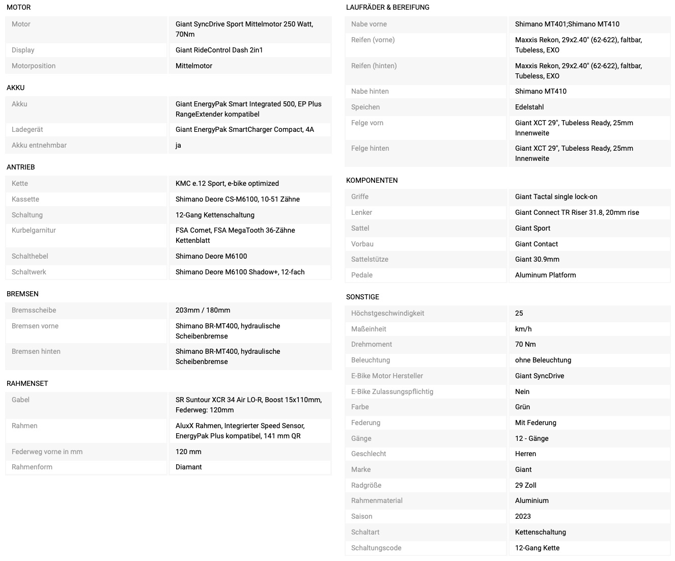 Ausstattungstechnisch ist das Giant Fathom E+ 1 2023 in der unteren Mittelklasse einzuordnen. Das E-MTB setzt beispielsweise auf den bis zu 250 Watt beziehungsweise 70Nm starken SyncDrive Sport Mittelmotor, bei dem es sich um ein umgelabeltes Yamaha-Aggregat handelt. Etwas klein fällt unterdessen der 500Wh fassende Akku des E-Bikes aus, die 12-Gang-Schaltung wird aber mit zuverlässigen Shimano Deore Komponenten verwirklicht. Zum Deal-Preis von rund 2.000 Euro liest sich das Datenblatt des elektrischen Giant-Mountainbikes auf jeden Fall nicht schlecht, weshalb sich Käufer in diesem Preissegment dieses Angebot für das Fathom E+ 1 etwas genauer ansehen sollten.