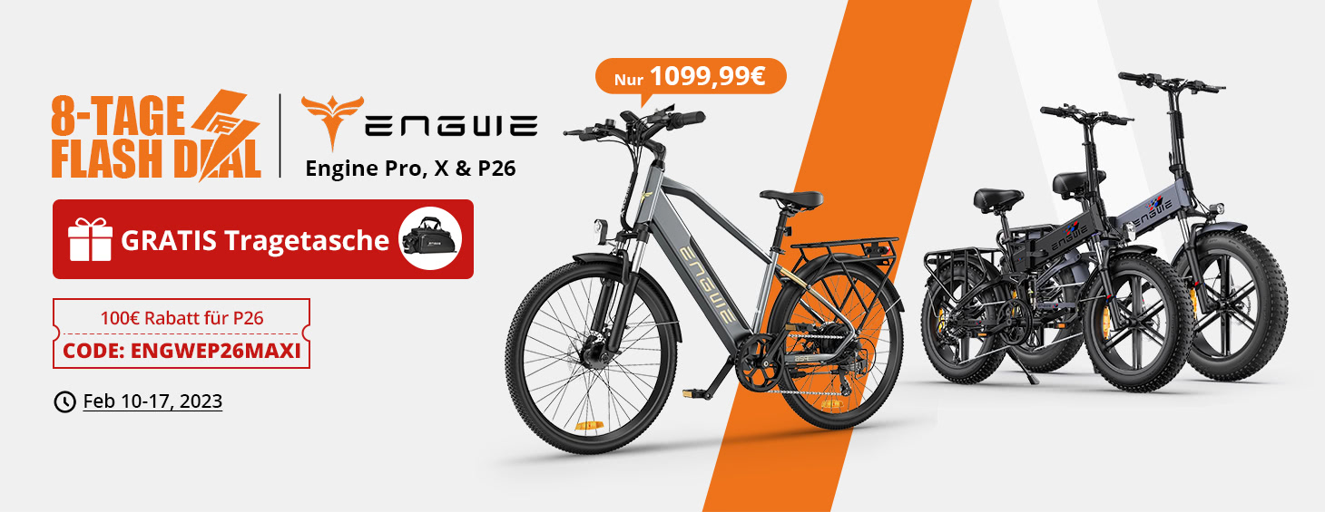Verkauft wird das Engwe P26 unter Verwendung des Coupons ENGWEP26Maxi für nur 1.099,99 Euro, was eine Ersparnis von 100 Euro ergibt. Zudem gibt es eiine Engwe 7L Rack Bag für Gepäck gratis dazu.