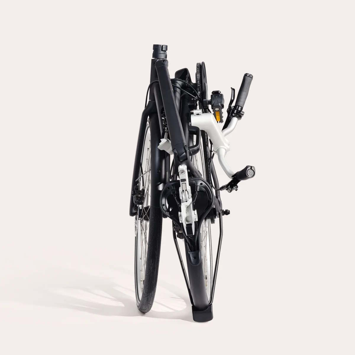 Das Bastille E sieht auf den ersten Blick wie ein ganz übliches Fahrrad aus und kommt auch nicht wie für ein Faltrad üblich mit kleineren Reifen. Dementsprechend ist auch ein spezieller Faltmechanismus vorhanden. Abgeklappt wird konkret das Unterrohr. Vorne und hinten kommen 27,5 Zoll große Reifen zum Einsatz, falten lässt sich das Fahrrad Herstellerangaben zufolge in nur 5 bis 10 Sekunden. Verbaut ist kein Mittelmotor, stattdessen kommt ein Nabenmotor zum Einsatz.
