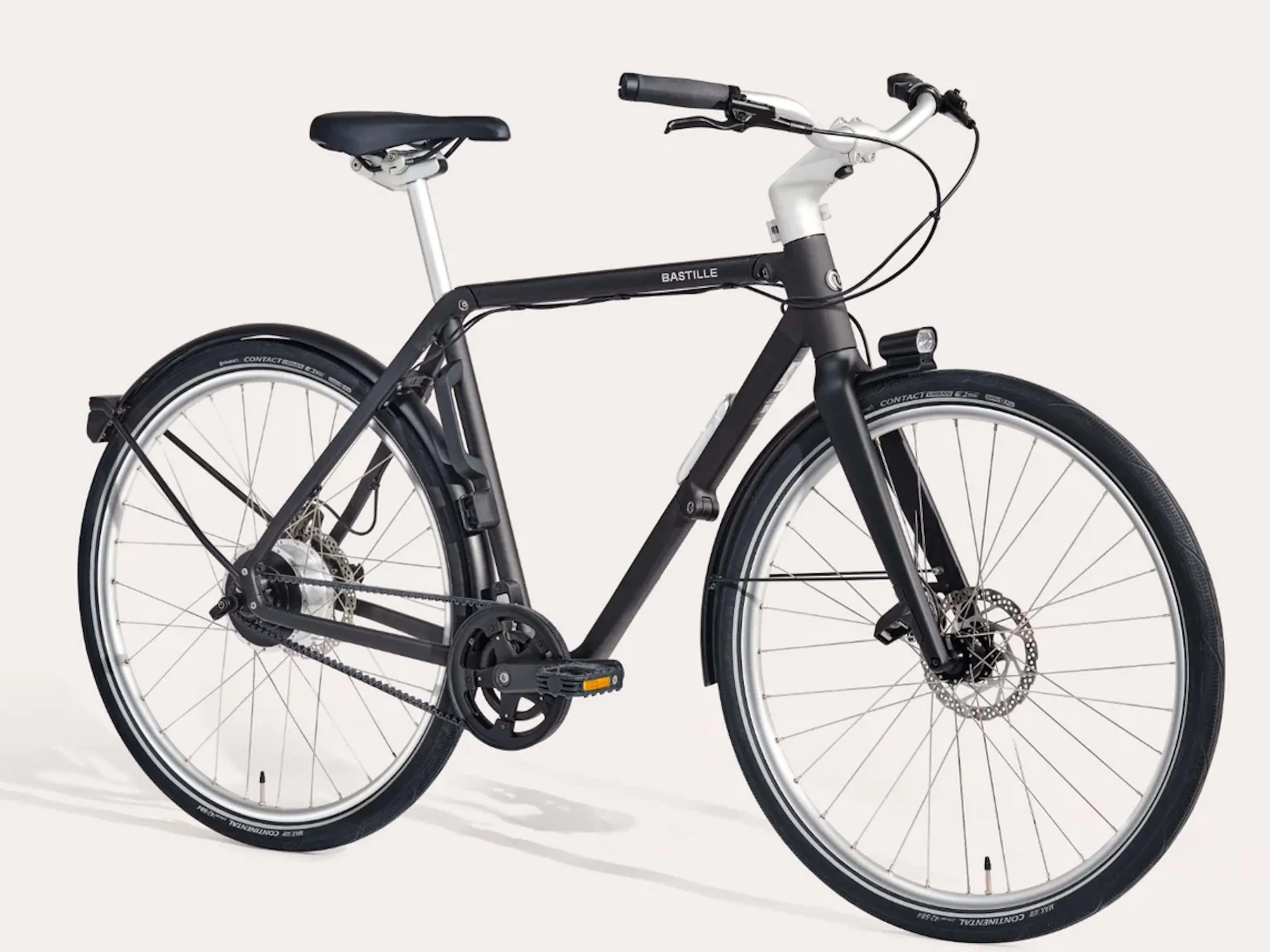 Angegeben wird ein Gewicht von 16,7 Kilogramm. Dieses Gewicht umfasst das Fahrrad, Schutzbleche und die Beleuchtung, aber keinen Gepäckträger. Vorne und hinten sind hydraulisch agierende Scheibenbremsen vorhanden. Eine Federgabel fehlt, die Gabel besteht stattdessen aus Carbon. Das Bastille E ist für einen Preis von 3.190 Euro erhältlich und damit doch relativ preisintensiv.