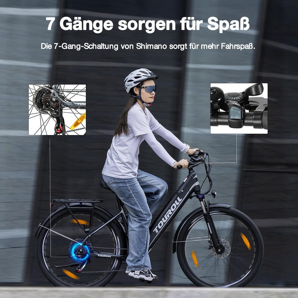 Für Sicherheit und Sichtbarkeit ist das Touroll J1 ST E-Trekkingbike mit einer StVZO-zertifizierten Beleuchtung sowie mechanischen Scheibenbremsen und E-Brake ausgestattet. Ebenfalls an Bord sind ein Gepäckträger zum Transport von Einkaufen und Co sowie Schutzbleche für Fahrten bei schlechtem Wetter. Das alles gibt es aktuell für nur 747,12 Euro bei Otto.