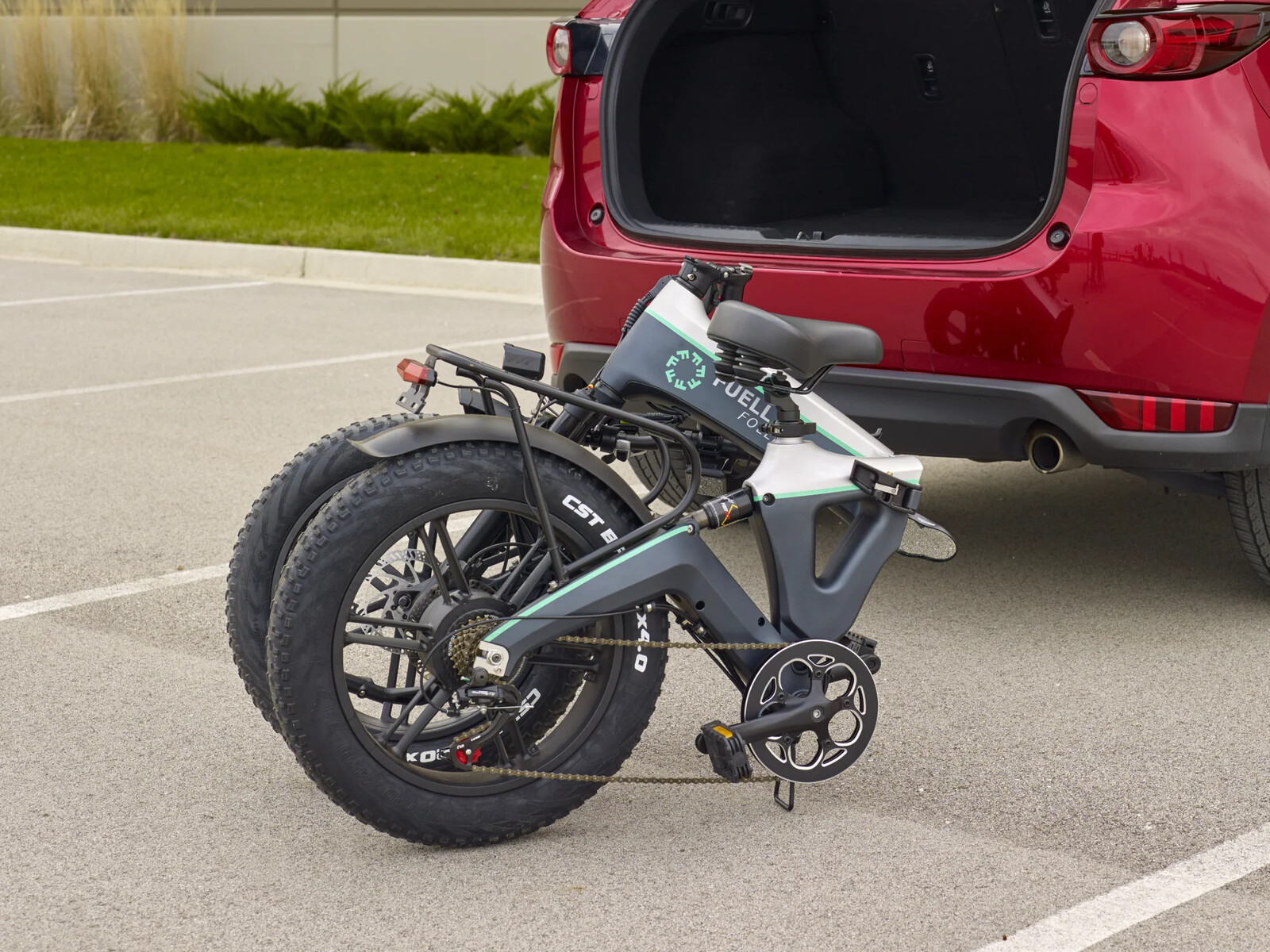 Das Folld-1 von Fuell wird von einem 250 W starken Motor von Bafang mit satten 85 Nm Drehmoment angetrieben und kommt mit einem großen Akku mit 750 Wh Kapazität daher. Der Hersteller verspricht eine Reichweite von bis zu 110 km mit einer Akkuladung, was für ein E-Klapprad eine Menge ist. Die Batterie ist aus dem Rahmen entnehmbar, der für ein leichtes Gewicht aus Magnesium und Aluminium besteht. Informationendarüber, was das Fuell Folld-1 genau wiegen wird, sind aber noch nicht bekannt.