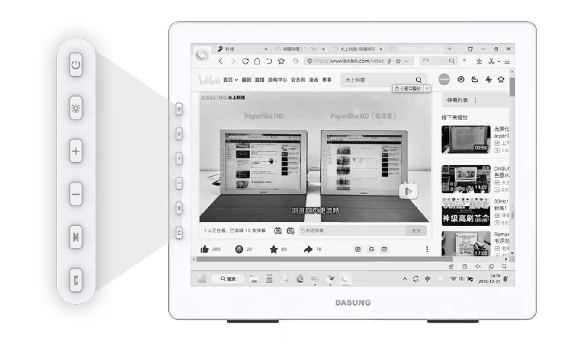 Der neue Dasung Paperlike 103 Monitor setzt auf ein 10,3 Zoll E-Ink-Panel im 4:3-Format, das eine Auflösung von 1.874 x 1.404 Pixel darstellen kann. Das Display kann zwar nur Graustufen darstellen, kann durch die reflektive Oberfläche dafür aber auch bei direkter Sonneneinstrahlung einwandfrei abgelesen werden, während eine integrierte Frontbeleuchtung die Nutzung bei Nacht ermöglicht.