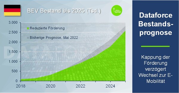 Hauptgrund für die reduzierte Prognose sind für die Marktexperten die Anpassungen bei der Förderung für E-Autos. Diese seien deutlich umfangreicher ausgefallen, als noch im Mai erwartet, so Dataforce. Hinzu würden stark steigende Preise für Akkus und Strom kommen.
