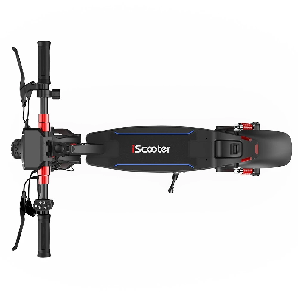 Der iScooter iX6 ist ein besonders starker E-Scooter, der vor allem für Fahrten durch unwegsames Gelände ausgelegt ist. Eine ABE gibt es leider nicht, dafür aber 11 Zoll große Offroad-Luftreifen sowie eine doppelte Vorder- und Hinterradfederung für mehr Haltbarkeit, Robustheit und Komfort. Somit sind sowohl Grip als auch hervorragende Stoßdämpfung auf unebenen Strecken sichergestellt.