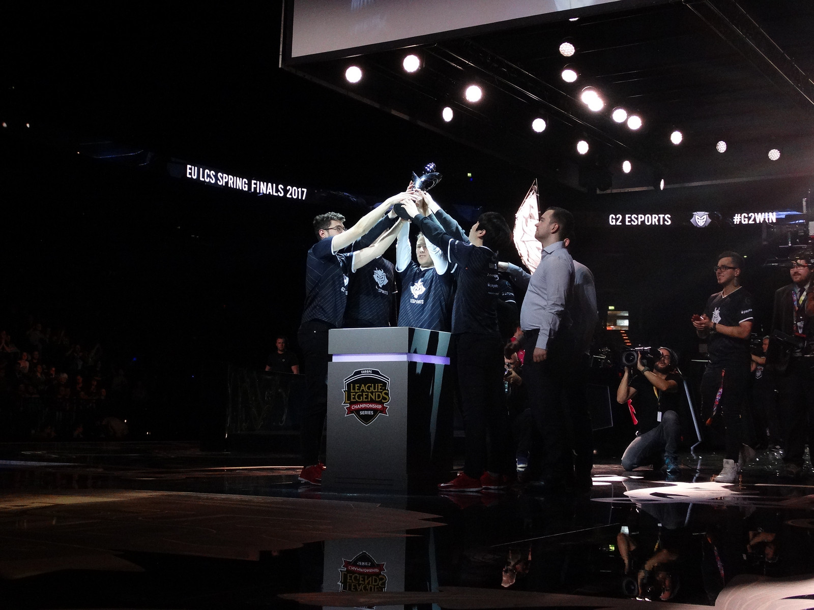 Am 23. April duellierten sich G2 und UOL um den ersten Platz und die Meisterschaft des Spring Splits 2017. Auf Seiten von G2 stehen dabei Top-Laner Daehan "Expect" Ki, Jungler Kim "Trick" Gang-Yun, Mid-Laner Luka "Perkz" Perković, AD Carry Jesper "Zven" Svenningsen und Support Alfonso "Mithy" Aguirre Rodriguez. Dem Titelverteidiger den Pokal stehlen wollten die Unicorns of Love mit Top-Laner Tamás “Vizicsacsi” Kiss, Jungler Andrei "Xerxe” Dragomir, dem deutschen Mid-Laner Fabian "Exileh" Schubert, AD Carry Samuel “Samux” Fernández Fort und Support Zdravets “Hylissang” Galabov. Dies gelang ihnen aber nicht ganz. Nachdem G2 die Unicorns im ersten Spiel aus Fünf dominierte, konnten sich UOL zwar im Zweiten wieder zurück kämpfen, verloren allerdings trotzdem. Im Dritten zeigten die Einhörner aber aus welchem Holz sie geschnitzt sind und spielten G2 regelrecht an die Wand. Trotz allem ging der Titelverteidiger nach Spiel Nummer vier als Meister von der Bühne und konnte den Pokal, zum dritten Mal in Folge, nach Hause nehmen.
