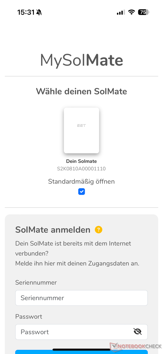 Anschließend muss der SolMate noch eingerichtet werden. Dies kann wahlweise über die MySolMate App für Android bzw. iOS oder über eine Weboberfläche im Browser erledigt werden. Zum Start unseres Tests gab es noch Probleme mit der iOS-App, sodass wir die WLAN-Einrichtung im Browser eines iPhones durchführen mussten. Das ist mittlerweile behoben.