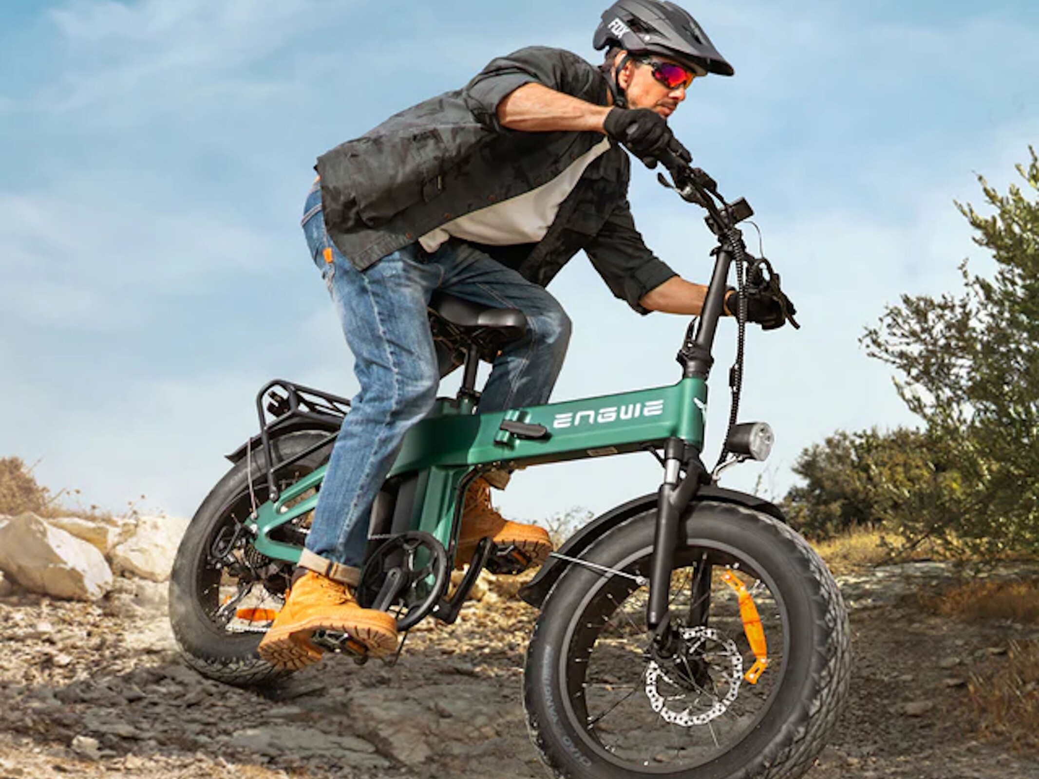 Es handelt sich ebenfalls um ein klappbares E-Bike, dementsprechend lässt sich der Rahmen klappen, zudem kann der Lenker abgeklappt werden. Das E-Bike kommt mit 4-Zoll-Reifen, welche im Durchmesser 20 Zoll messen. Solche Ballonreifen werden mit erheblich reduziertem Reifendruck genutzt, daraus ergibt sich eine gewisse Dämpfung und eine große Oberfläche - die etwa auf Matsch oder sogar Schnee sehr vorteilhaft sein kann.