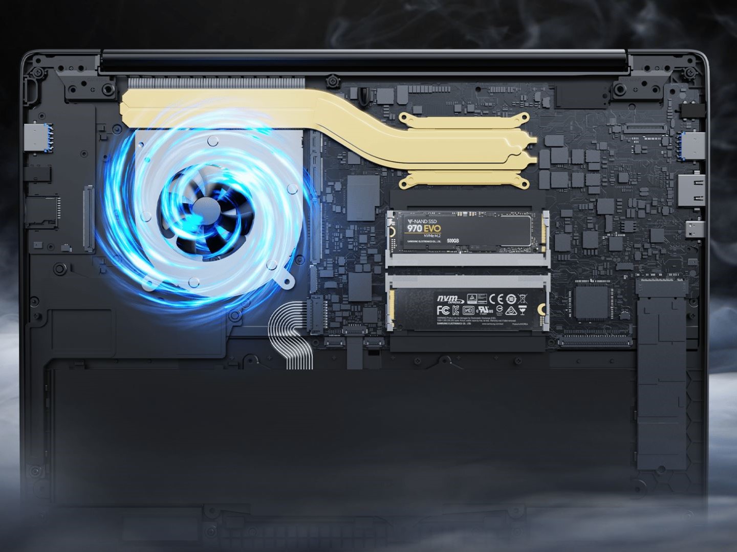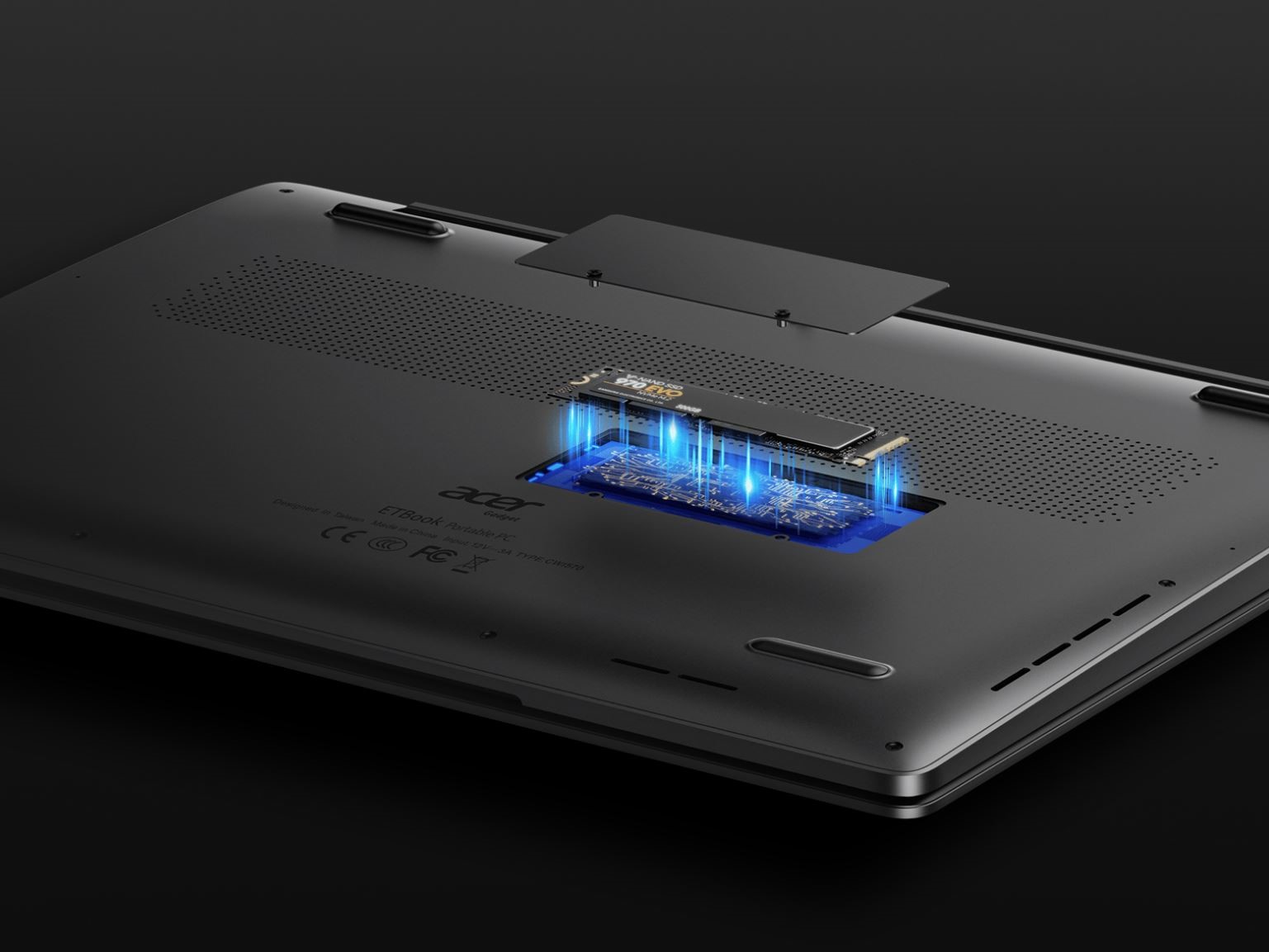So kommt die in dem Intel Core i5-12450H integrierte Grafiklösung zum Einsatz, einfachere Videospiele lassen sich damit aber trotzdem darstellen. Angeboten werden soll der Laptop mit einem 16 Gigabyte großen Arbeitsspeicher, dabei kommt ein Speicherriegel zum Einsatz. Damit ist das Upgrade auf 32 Gigabyte einfach möglich, da zwei RAM-Module installiert werden können. Im Auslieferungszustand kommt eine SSD mit einer Kapazität von 512 Gigabyte zum Einsatz, eine größere SSD wird unterstützt. Der Flash-Speicher im M.2 2280-Format wird dabei über vier PCIe 3.0-Lanes angebunden. Die SSD lässt sich besonders einfach wechseln, für diesen Zweck steht eine extra Klappe bereit.