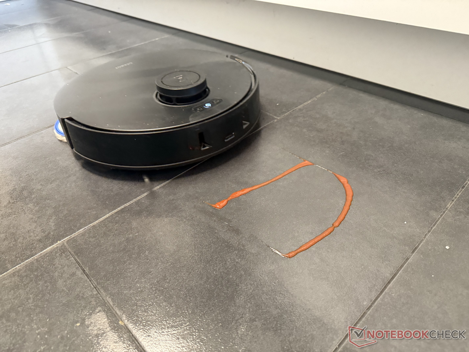 Das Wischergebnis ist zufriedenstellend. Abgesehen von den üblichen und gelegentlich zurückbleibenden Wischspuren von Modellen mit zwei rotierenden Wischmopps hat der Saug- und Wischroboter Ecovacs Deebot T30S Combo Complete Glattböden im Test meist zuverlässig gereinigt. Beim Kechup-Härtetest sind leichte Spuren zurückgeblieben. Das haben wir schon besser, aber auch schon schlechter erlebt. Erkennt der Roboter gröbere Verschmutzung, ist optional eine intelligente Nachreinigung möglich.