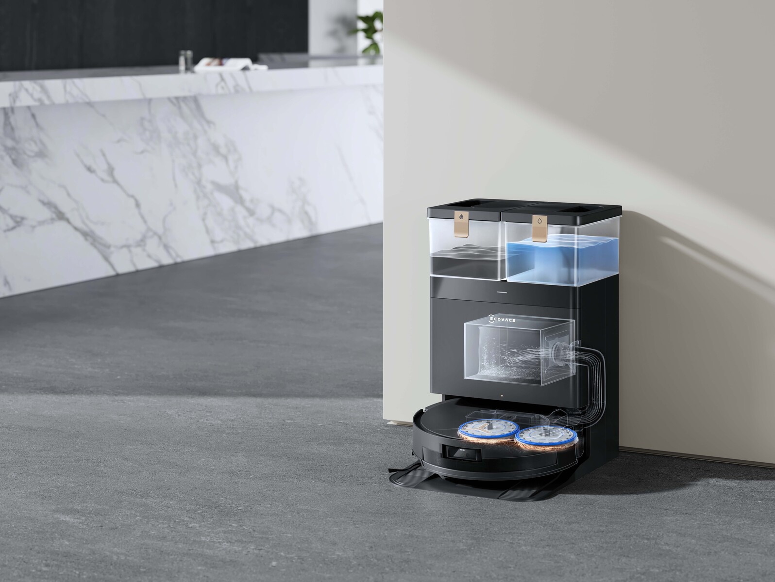 Der Deebot T50 Pro Omni wartet als Verbesserungen unter anderem mit Reinigungsmitteldosierung, intelligenter Nachreinigung sowie einem verbesserten Yiko-GPT-Sprachassistenten auf.