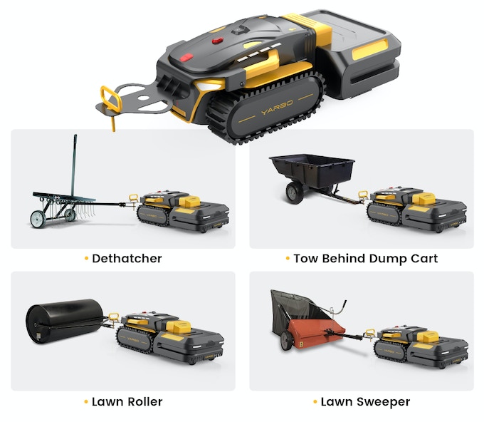So ist das System nicht nur als Mährroboter, sondern auch als autonomer Laubläser und Schneefräse einsetzbar. Der Wechsel zwischen den einzelnen Modulen soll mit wenigen Handgriffen und damit besonders schnell erfolgen können. Die Schneefräse soll bis zu 30 Zentimeter hohen Schnee beseitigen können und sowohl mit trockenem als auch mit nassem Schnee zurechtkommen. Es lassen sich Abwurfzonen festlegen. Der Mähaufsatz kann auf eine Schnitthöhe von zwischen 30 und 102 Millimeter justiert werden. Der Laubbläser bläst Laub ebenfalls in eine festgelegtes Areal. Mithilfe einer optional erhältlichen Anhängerkupplung lässt sich der Funktionsumfang noch erweitern, so lässt sich damit etwa eine Rasenwalze oder eine Rasenkehrmaschine anhängen.