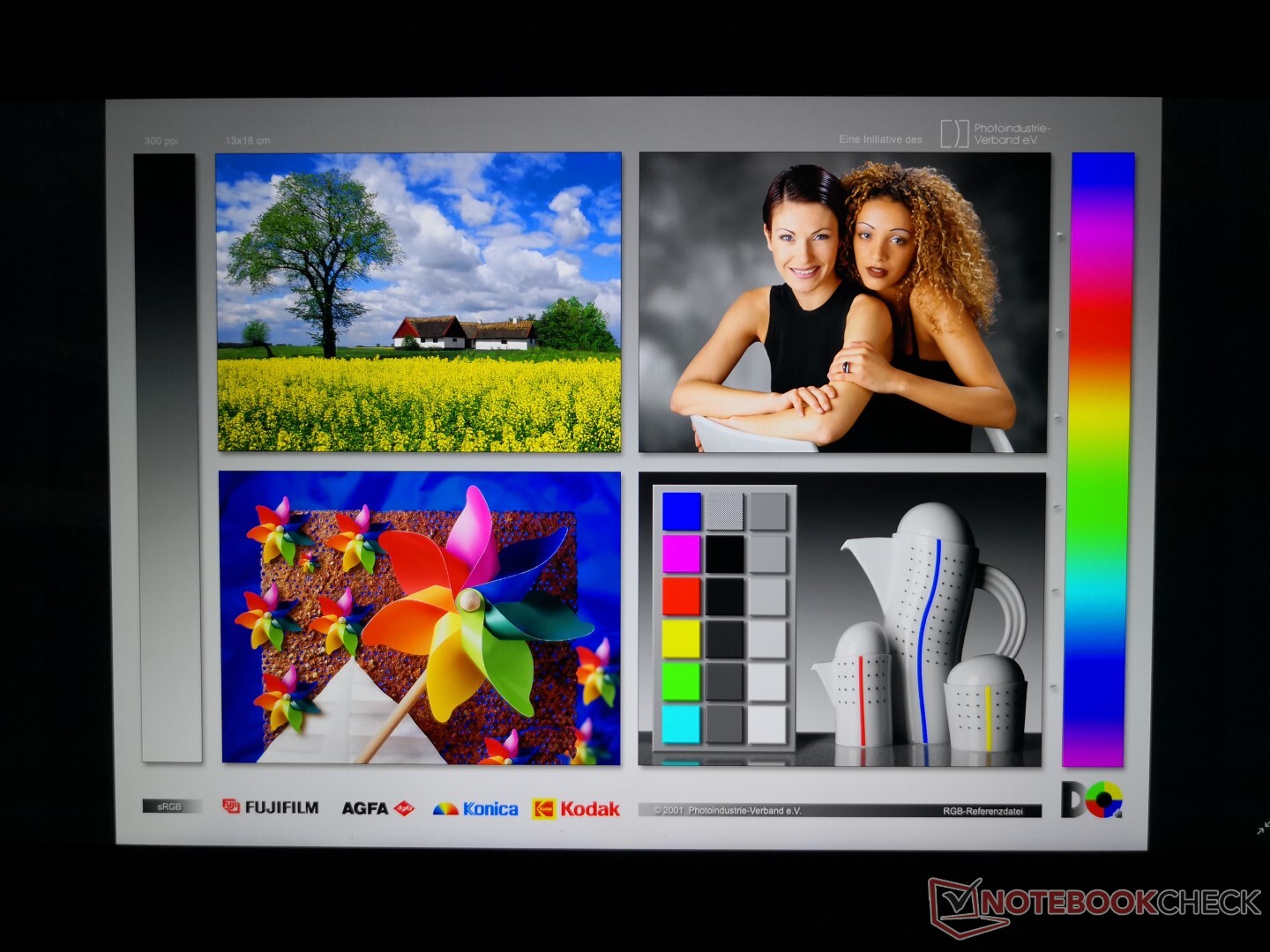 Weitere Messungen mit einem X-Rite-Farbmessgerät decken die ab Werk nur durchschnittlichen Graustufen und die zu kühle Farbtemperatur auf. Eine Kalibrierung verbessert beide Werte, was die Darstellungsqualität vor allem bei niedrigeren Sättigungsstufen steigert. Grün und Rot werden auch nach der Kalibrierung weniger originalgetreu dargestellt als andere Primär- und Sekundärfarben.