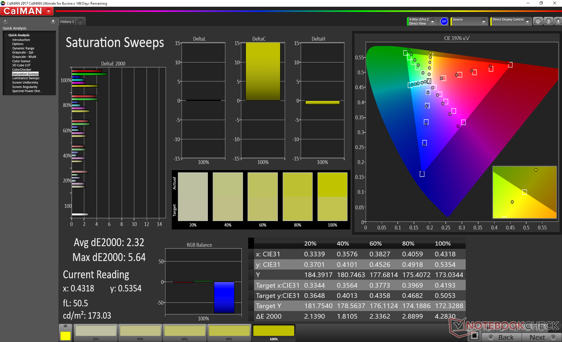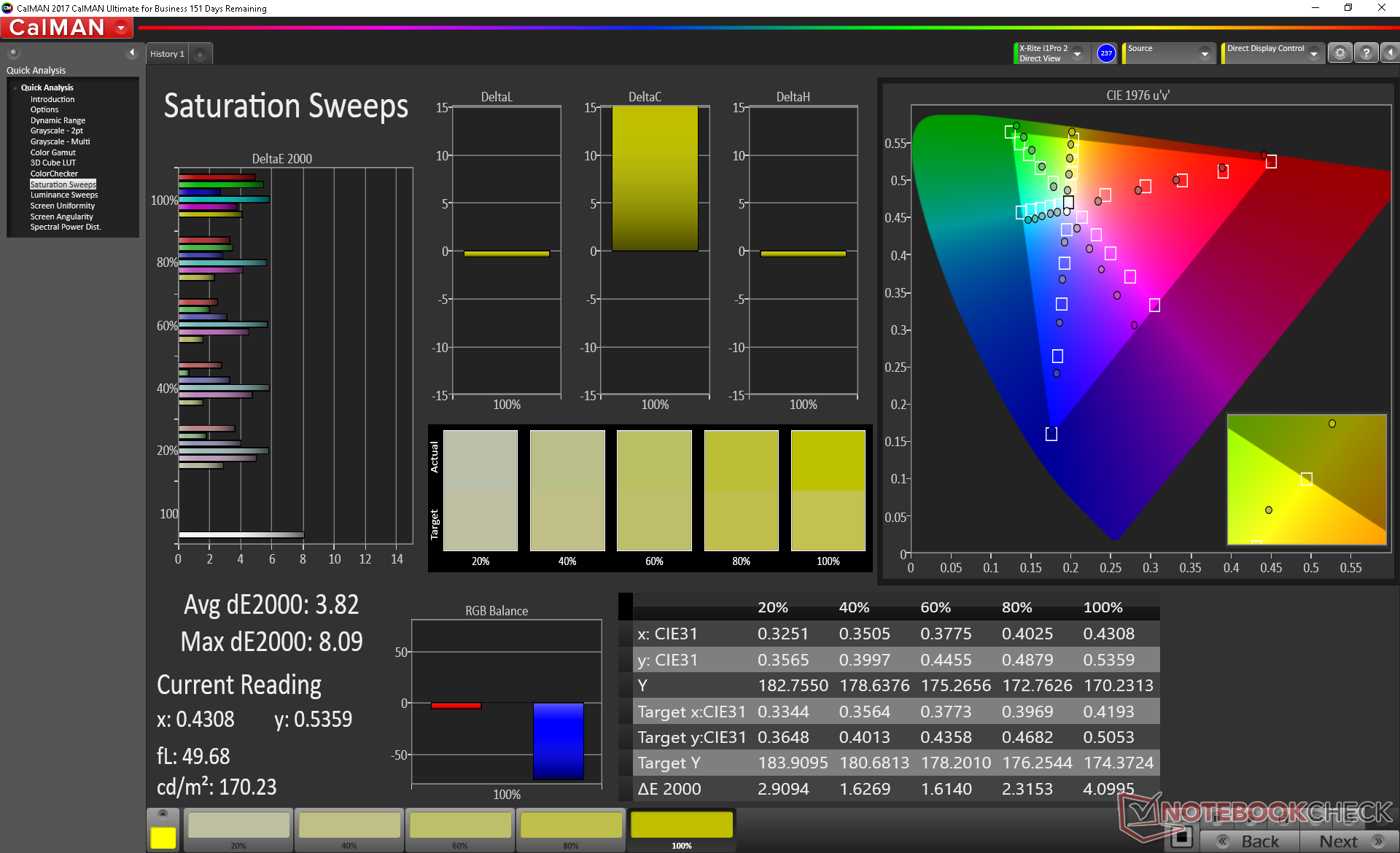 Die Farbraumabdeckung kommt mit 88 Prozent sRGB der vieler Flaggschiff-Ultrabooks wie dem HP Spectre x360 13 nahe. Im Gegensatz zum XPS 15 und dem ZenBook Pro 15 UX580 gibt es hier allerdings keine Variante mit vollständiger AdobeRGB-Farbraumabdeckung.