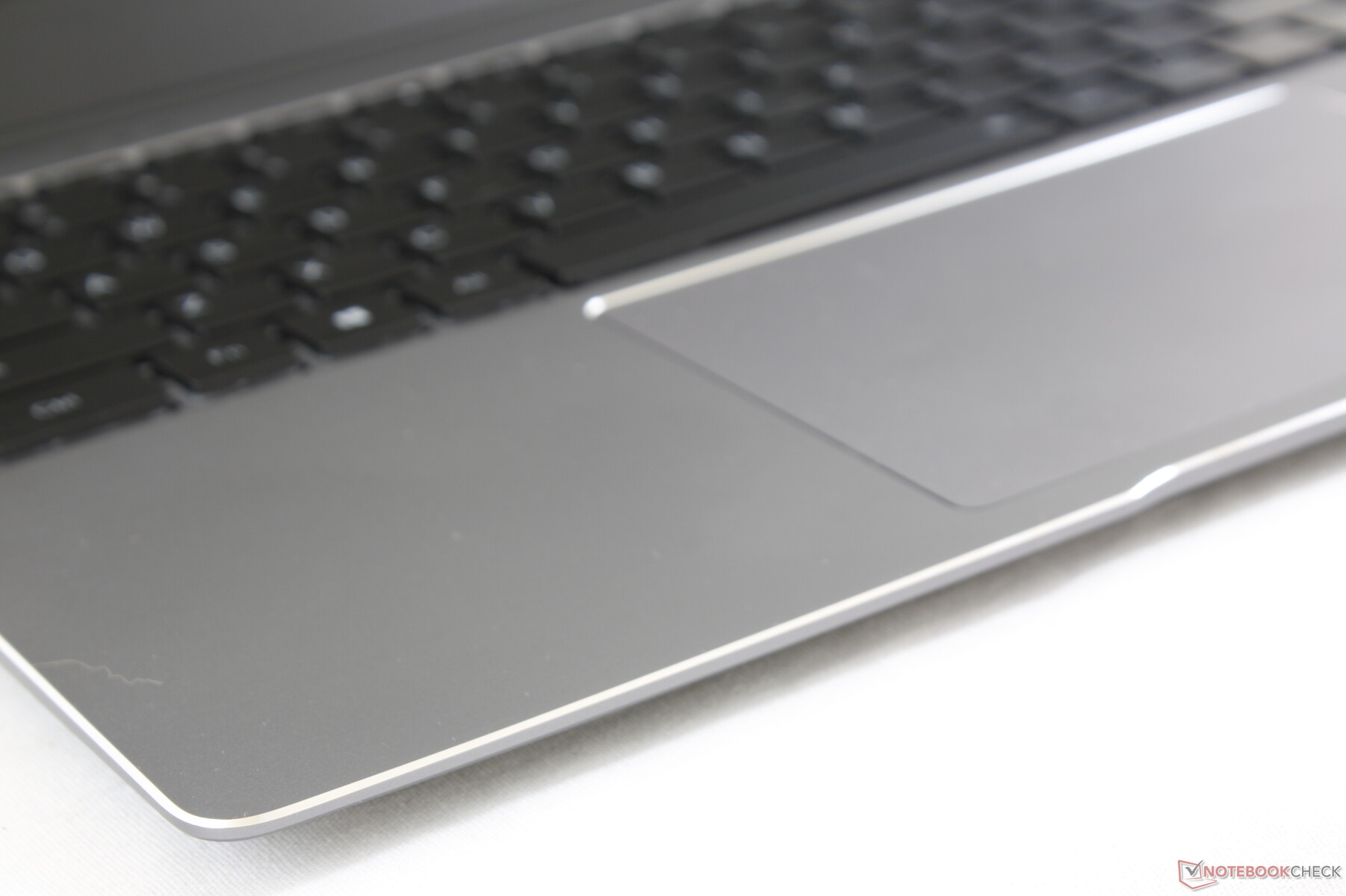 Das große ClickPad (13 x 9 cm) unseres Testgeräts ist leider defekt. Der Mauszeiger stockt und springt oft ohne erkennbaren Grund und ist dadurch quasi unbrauchbar. Schade, denn die Gleiteigenschaften der leicht angerauten Oberfläche sind bei Bewegungen mit mittleren bis schnellen Geschwindigkeiten eigentlich recht gut.