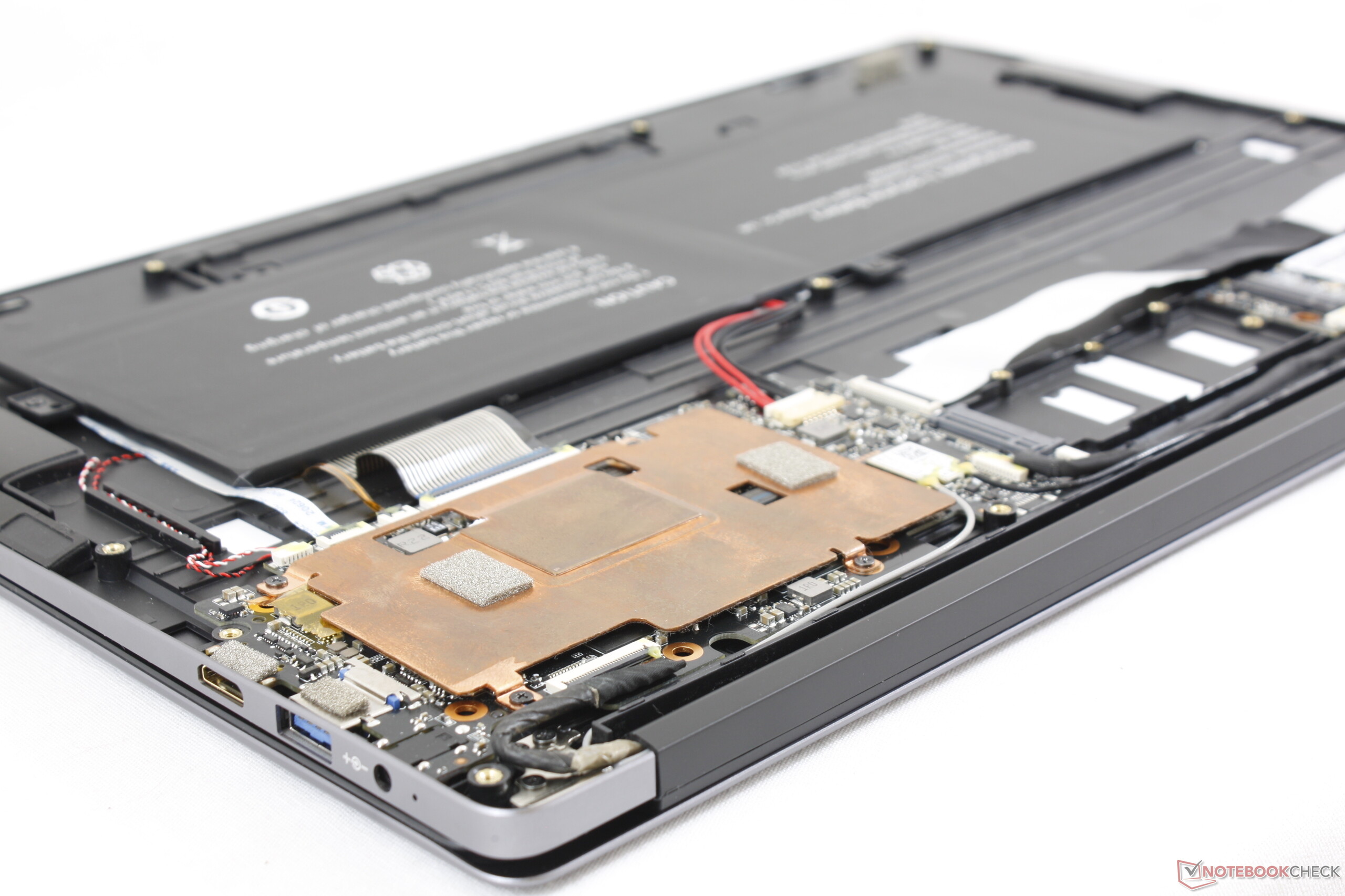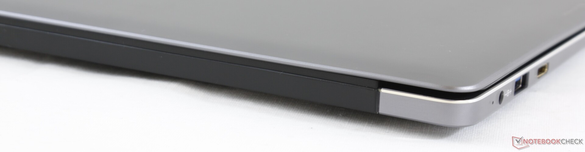 Während wir beim Layout der Anschlüsse nichts zu bemängeln haben, sind wir von der Anschlussausstattung an sich weniger angetan. So gibt es hier kein USB-C und statt einem vollwertigen HDMI-Anschluss nur den weniger verbreiteten mini-HDMI-Anschluss. Außerdem benötigt man zum Laden ein proprietäres Netzteil - viele andere Ultrabooks haben den Schritt zum universellen USB-C-Laden schon geschafft.