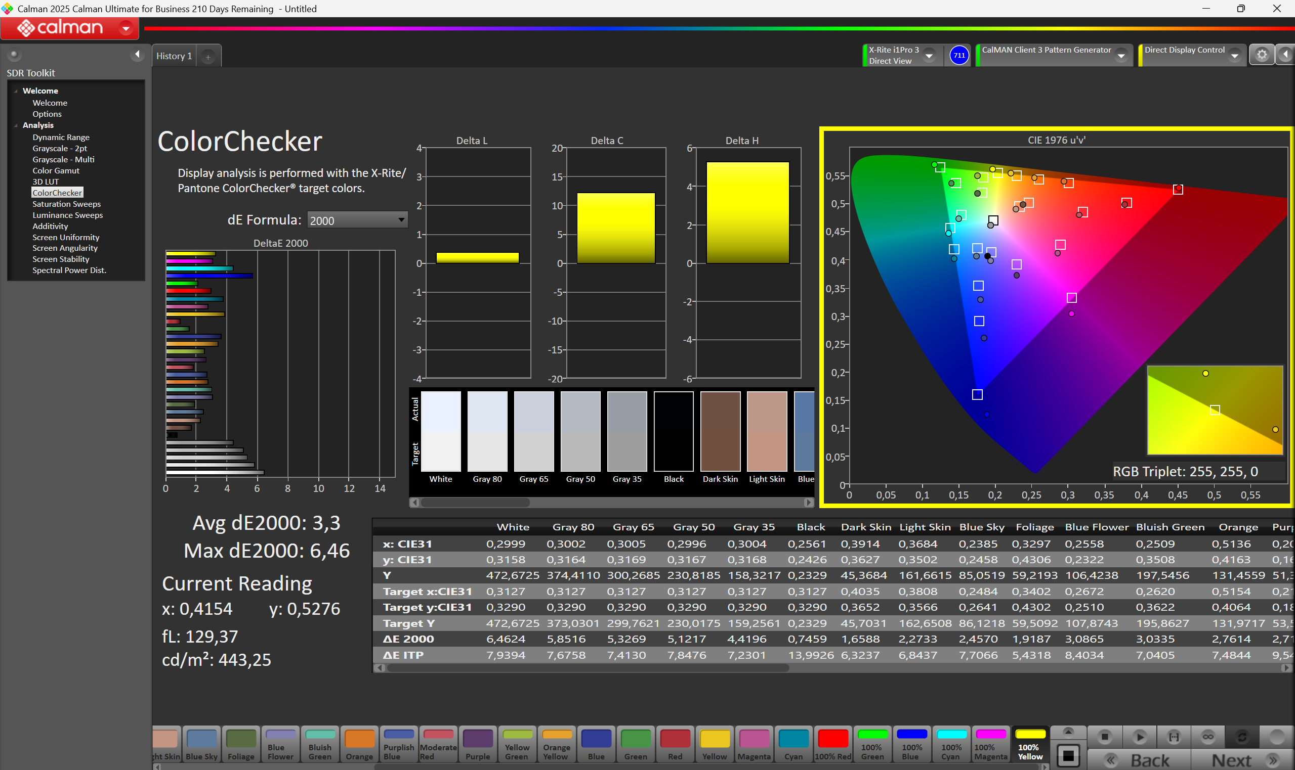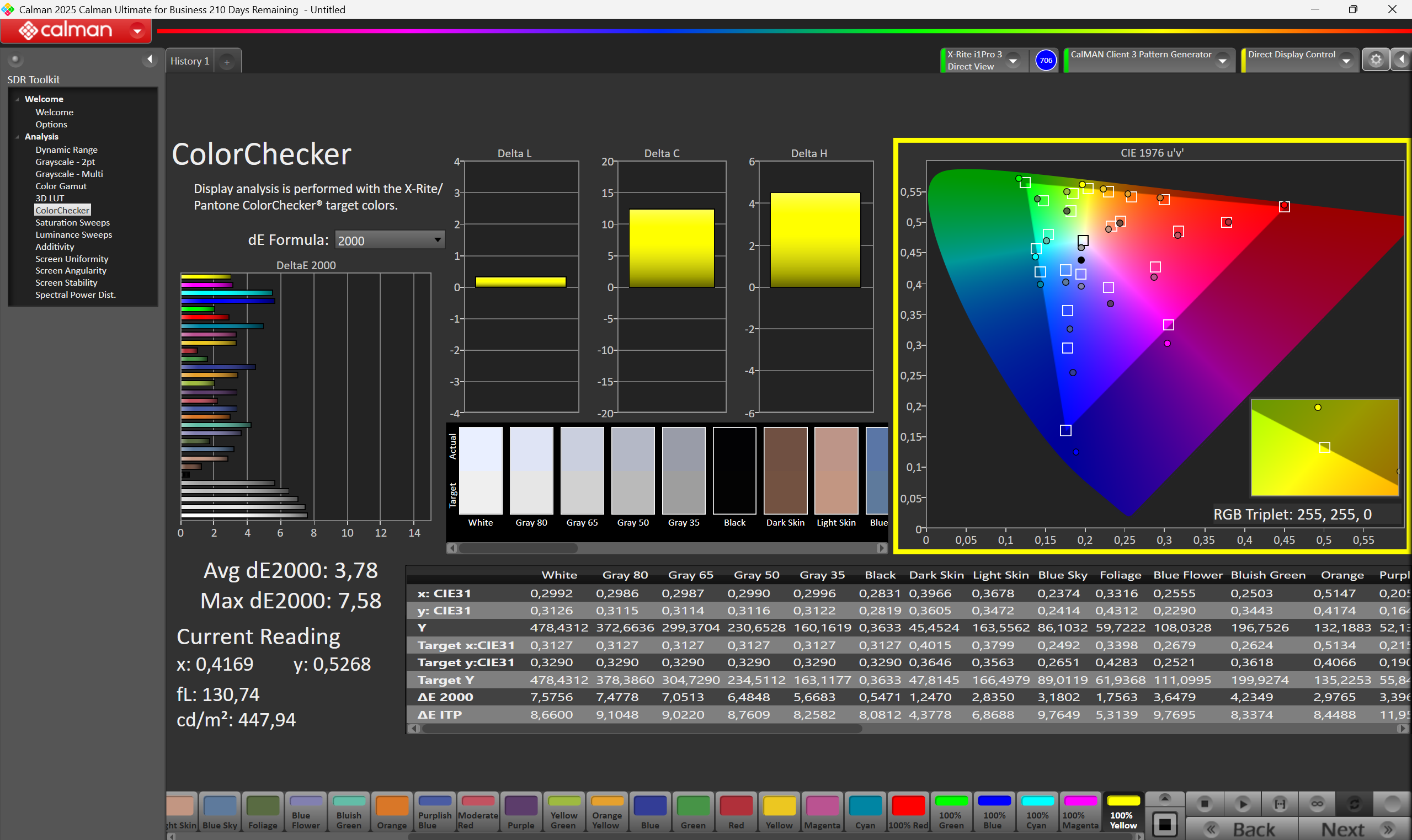 | Colorchecker dE 2000 max. * | 7.58 | 6.53 14% | 6.6 13% | 23.1 -205% | 8.5 -12% | 9.1 -20% |