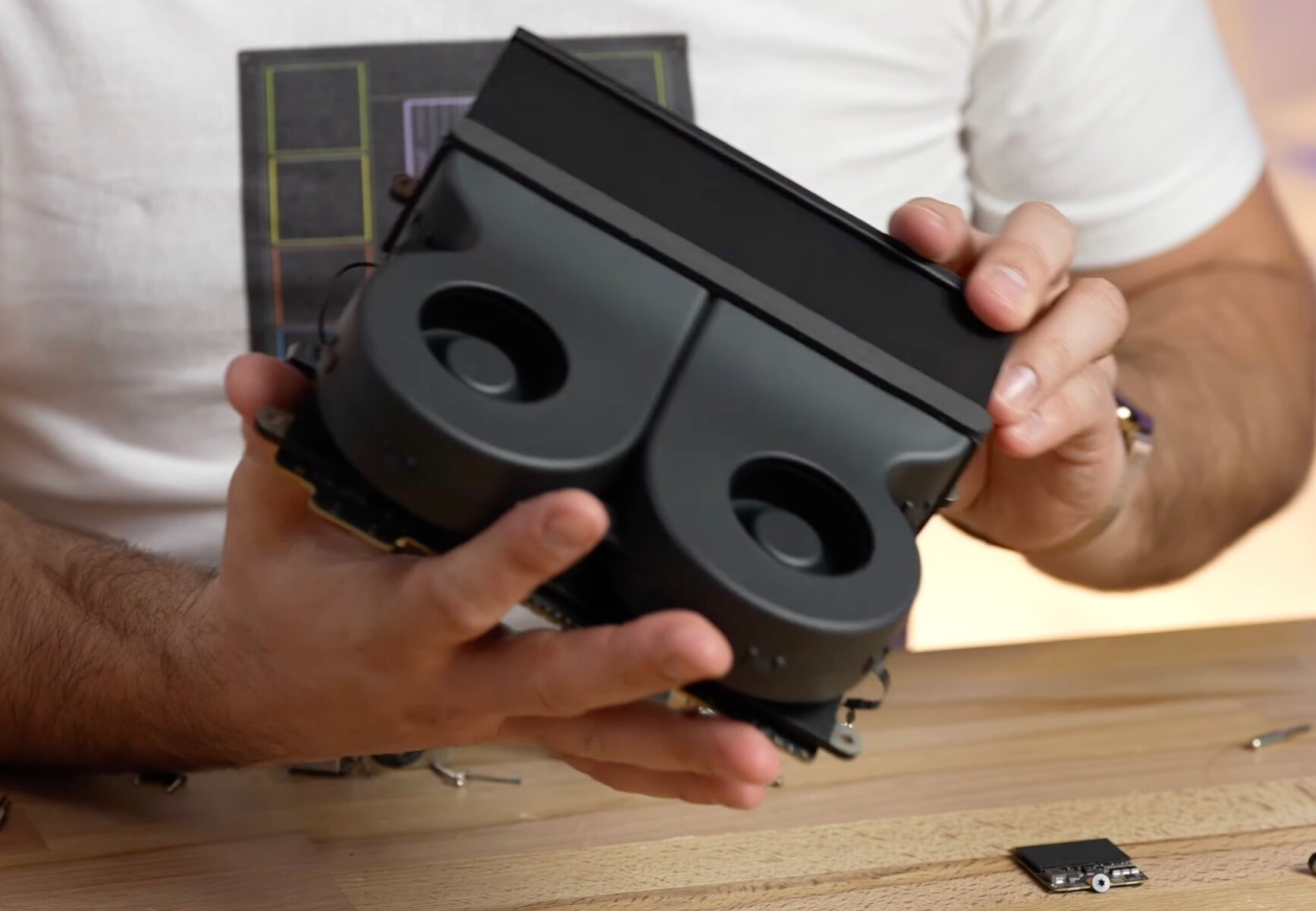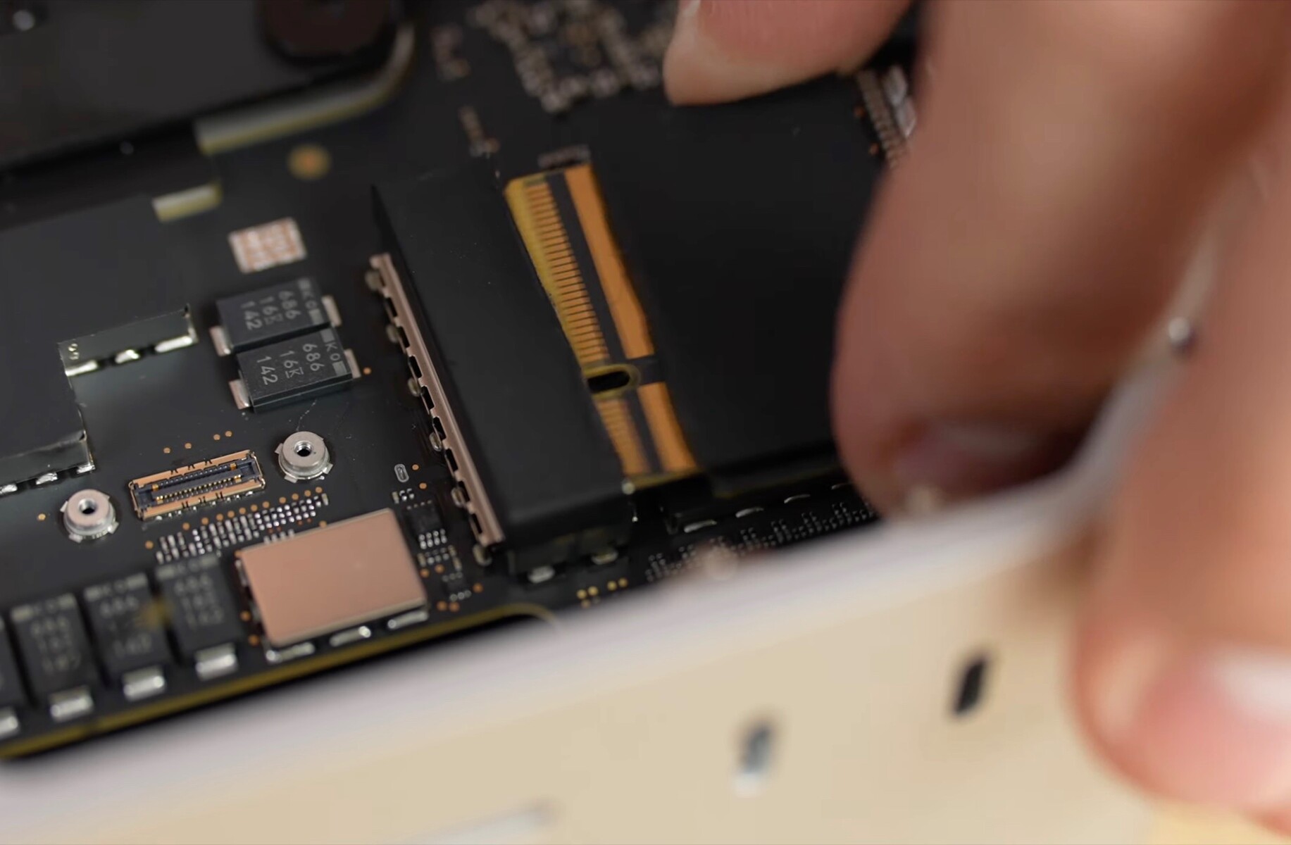 Die wohl größte Überraschung ist, dass sich am Mainboard zwei proprietäre Anschlüsse finden, die stark an M.2-Slots oder auch an das Interface der SSD-Module des aktuellen Mac Pro erinnern. Einen dieser Anschlüsse nutzt Apple bereits für eine SSD, mutmaßlich nutzt das Topmodell mit 8 TB Speicher beide Interfaces. Da der Speicher nicht am Mainboard verlötet ist wären Upgrades nach dem Kauf problemlos möglich – zumindest theoretisch, denn aktuell gibt es keine Möglichkeit, zusätzlichen Speicher in Apples proprietärem Format zu kaufen.