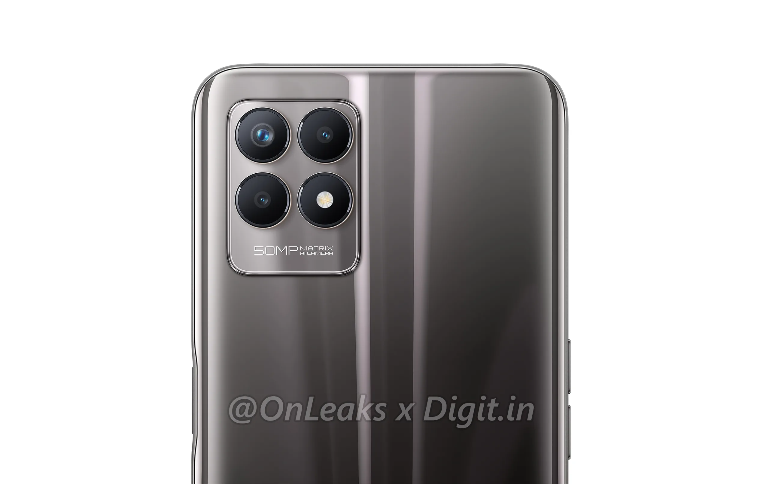 Das Design erinnert stark an das reguläre Realme 8, bei der Ausstattung gibt es aber einige größere Unterschiede. So setzt das Gerät auf ein 6,59 Zoll großes, 120 Hz schnelles 1.080p+-Display, der seitlich montierte Fingerabdrucksensor deutet darauf, dass ein LCD statt einem AMOLED-Bildschirm verbaut wird. Die 16 Megapixel Selfie-Kamera sitzt in einer Punch-Hole, währen das Kameramodul auf der Rückseite die 50 MP Hauptkamera, zwei 2 MP Sensoren sowie einen LED-Blitz beherbergt.