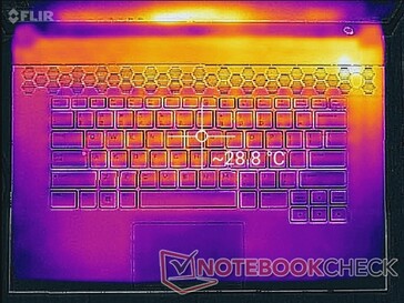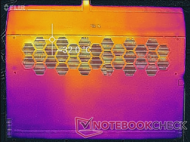 (+) Die Handballen und der Touchpad-Bereich erreichen maximal 32.2 °C und damit die typische Hauttemperatur und fühlen sich daher nicht heiß an.