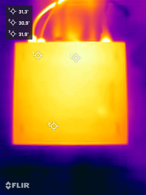 (+) Auf der Unterseite messen wir eine maximalen Wert von 32.4 °C (im Vergleich zum Durchschnitt von 36.3 °C).