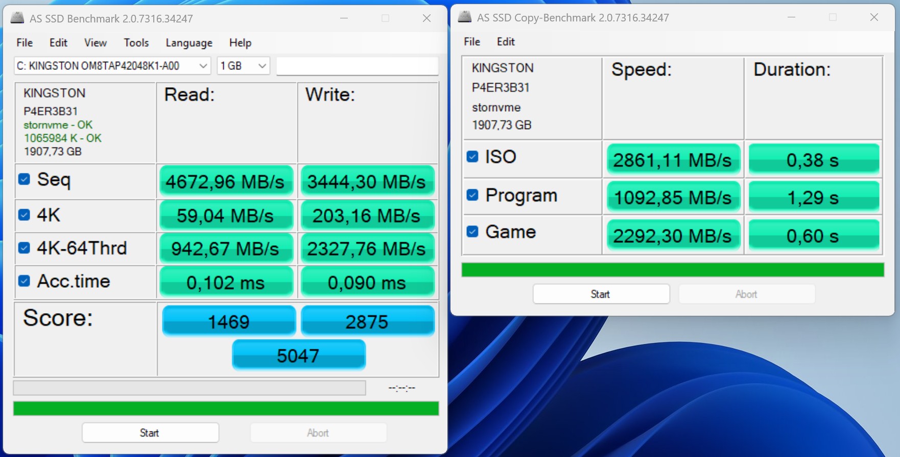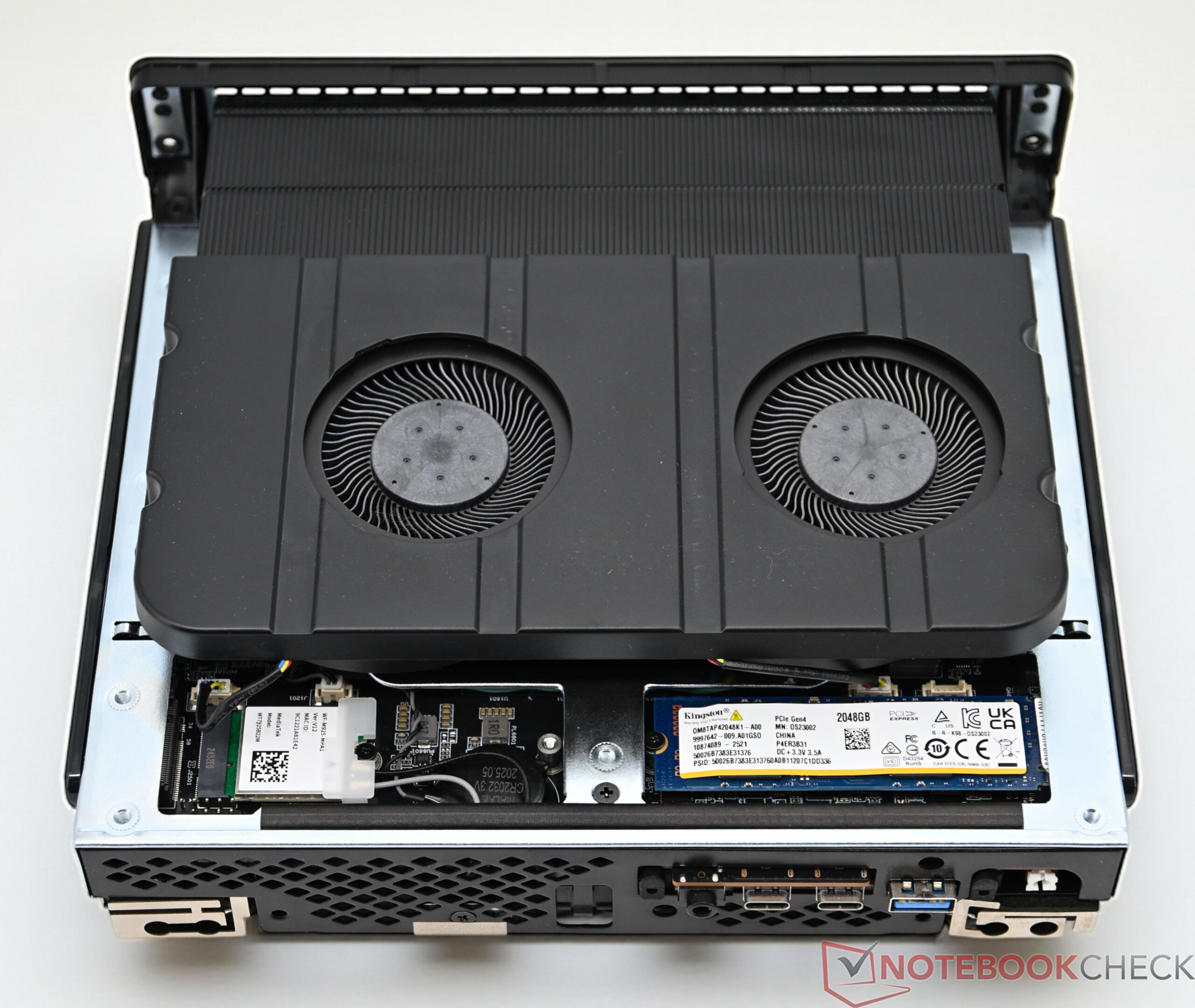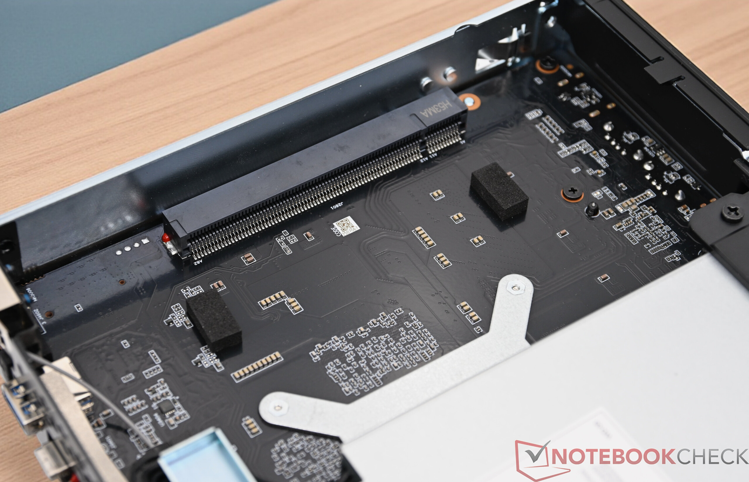 Im Minisforum MS-S1 Max arbeitet als Massenspeicher eine Kingston-SSD mit 2 TB Kapazität. Die Anbindung ist technisch optimal umgesetzt, auch wenn die Leistung in unseren Tests leicht hinter der Konkurrenz zurückbleibt. Insgesamt lässt sich der MS-S1 Max mit bis zu zwei M.2-2280-SSDs bestücken. Der PCIe-Slot kann zur Erweiterung mit zusätzlichem Massenspeicher genutzt werden.