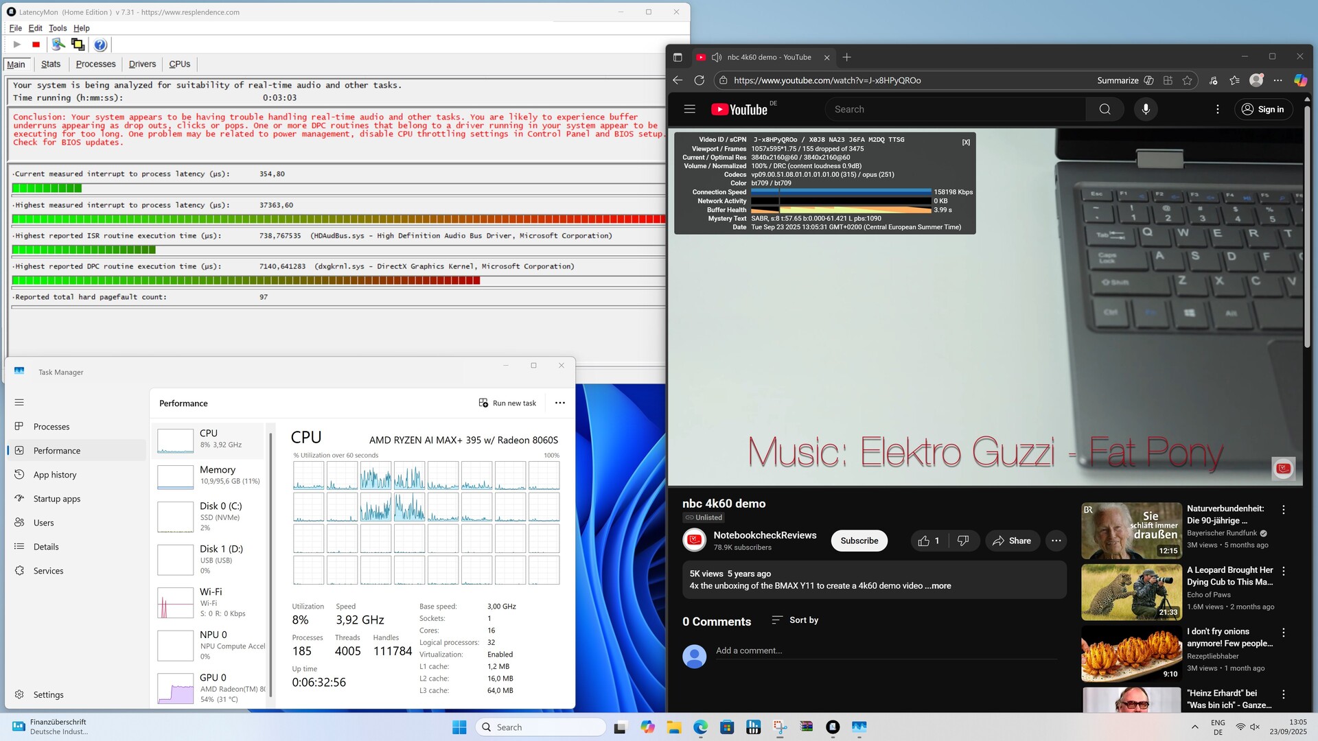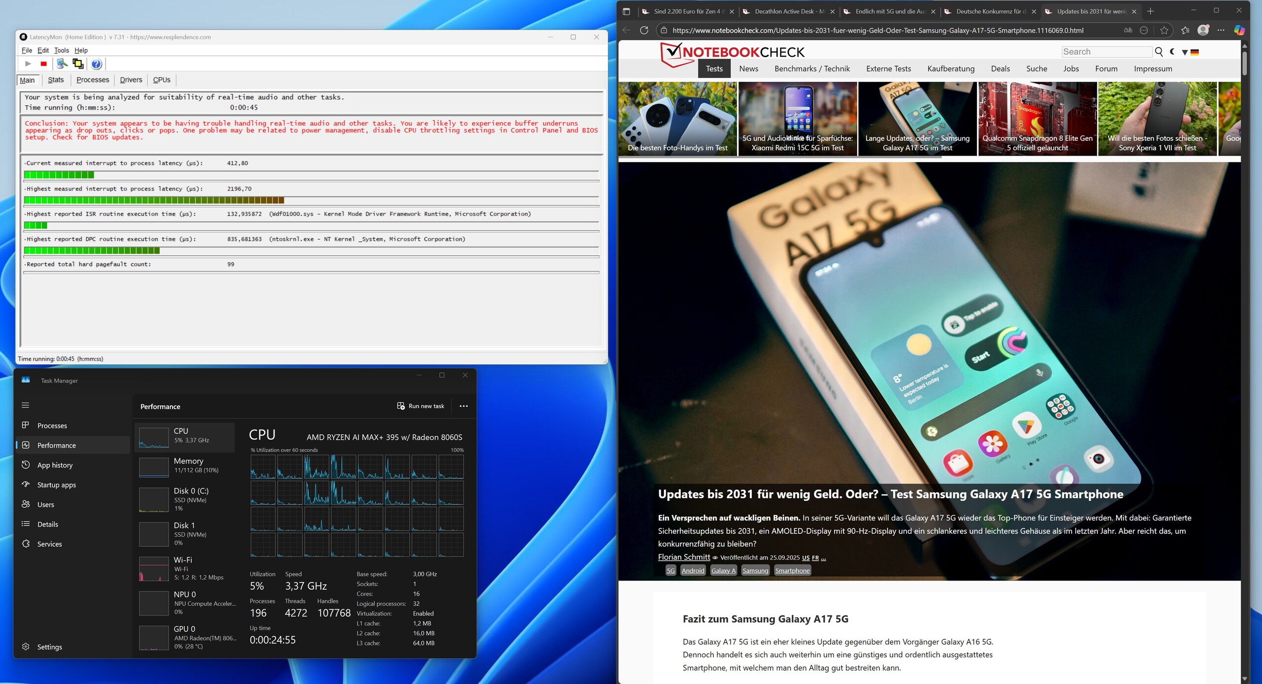 Ein neues BIOS (v1.03) macht den Minisforum MS-S1 Max im Idle deutlich leiser und katapultiert die Gesamtwertung spürbar nach oben. Genauere Details gibt es im Abschnitt Geräuschemissionen. Die DPC-Latenzen konnten zwar gesenkt werden, erreichen aber noch immer keine Bestwerte. Einen Einfluss auf die Gesamtleistung konnten wir nicht feststellen.