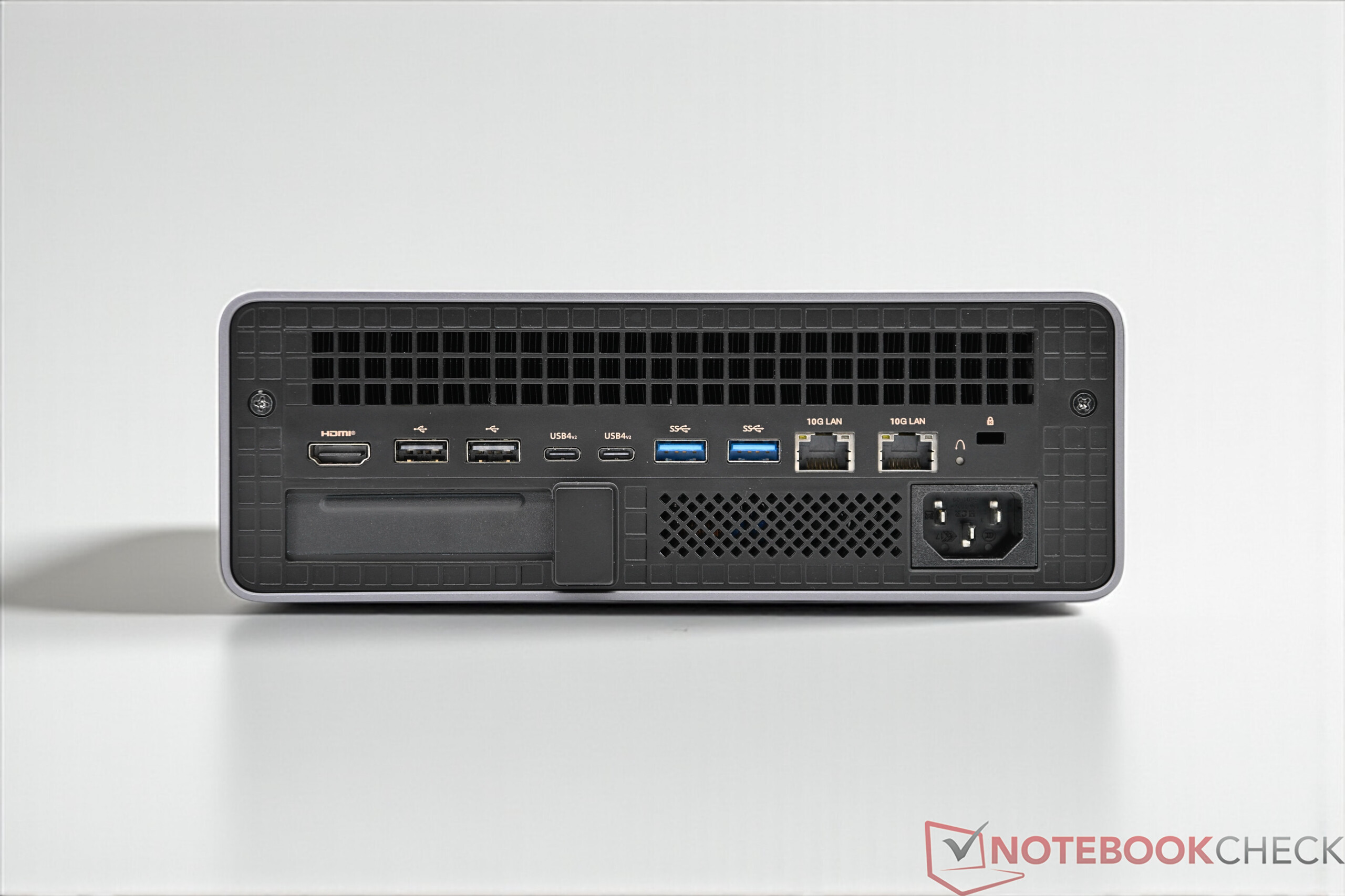 Der Minisforum MS-S1 Max besticht durch ein erstklassig verarbeitetes Gehäuse, das Metall und Kunststoff in einer gelungenen Kombination vereint. Anschlussseitig hat der MS-S1 Max sehr viel zu bieten. Zur üppigen Anschlussvielfalt gehören zwei USB4-Ports und zwei ultraschnelle USB4 v2-Schnittstellen. Abgerundet wird das starke Paket durch zwei 10G-LAN-Anschlüsse, die höchste Netzwerkleistung garantieren. Intern ermöglicht der Mini-PC zudem, eine PCIe-Karte zu installieren. Der interne PCIe-x16-Slot ist auf x4-Geschwindigkeit beschränkt.