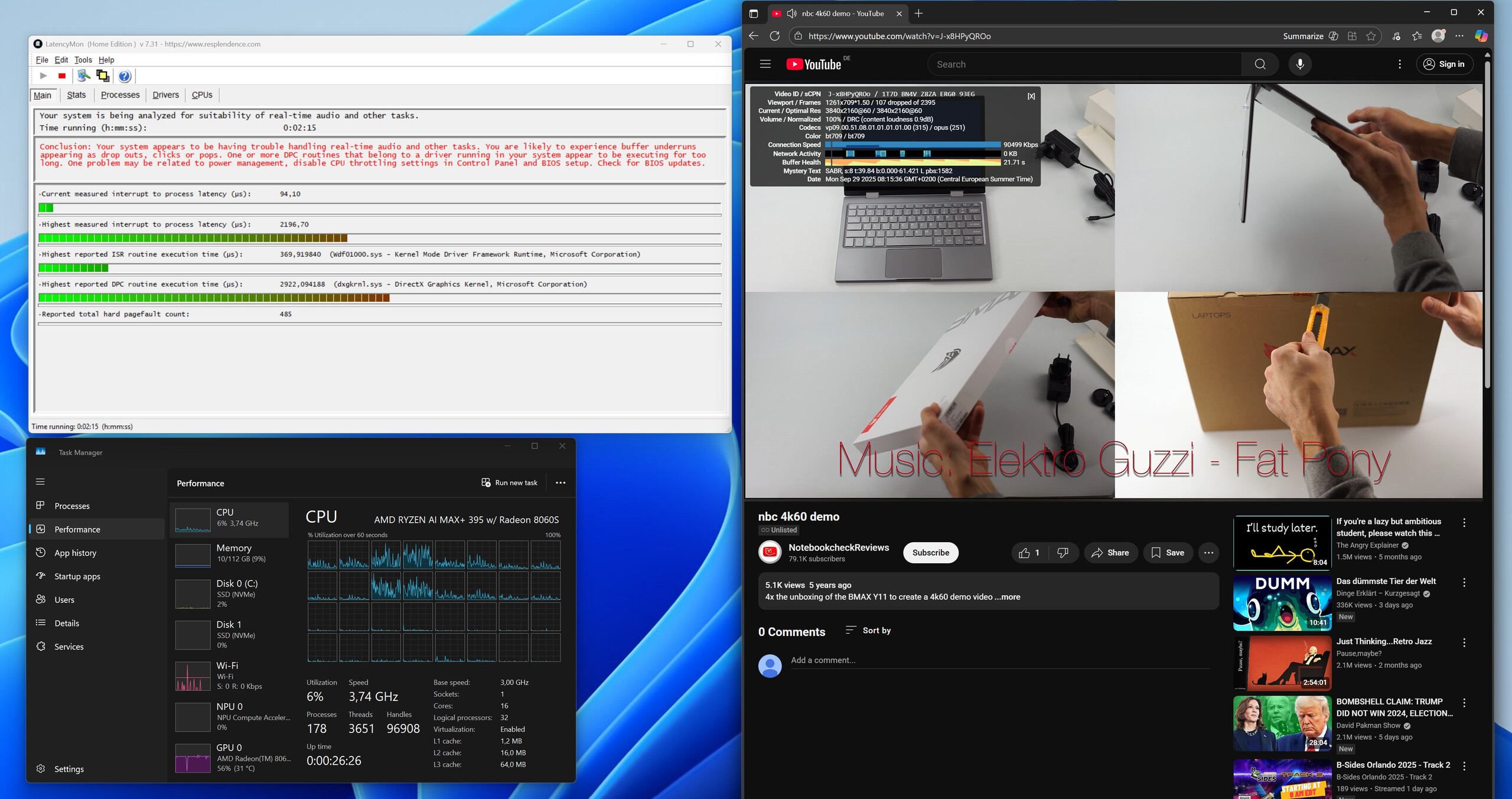 | DPC Latencies / LatencyMon - interrupt to process latency (max), Web, Youtube, Prime95 | |