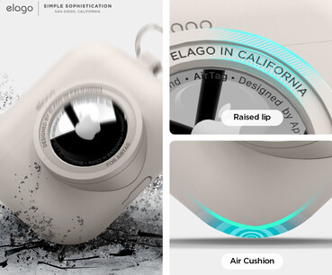 Die Hülle besteht aus Silikon, Stürze sollen mühelos weggesteckt werden. Die AirPods Pro können drahtlos geladen werden, während sie sich in der Hülle von Elago befinden. Ein Karabiner kann seitlich befestigt werden, um die Befestigung an einer Tasche oder einem Rucksack zu ermöglichen.