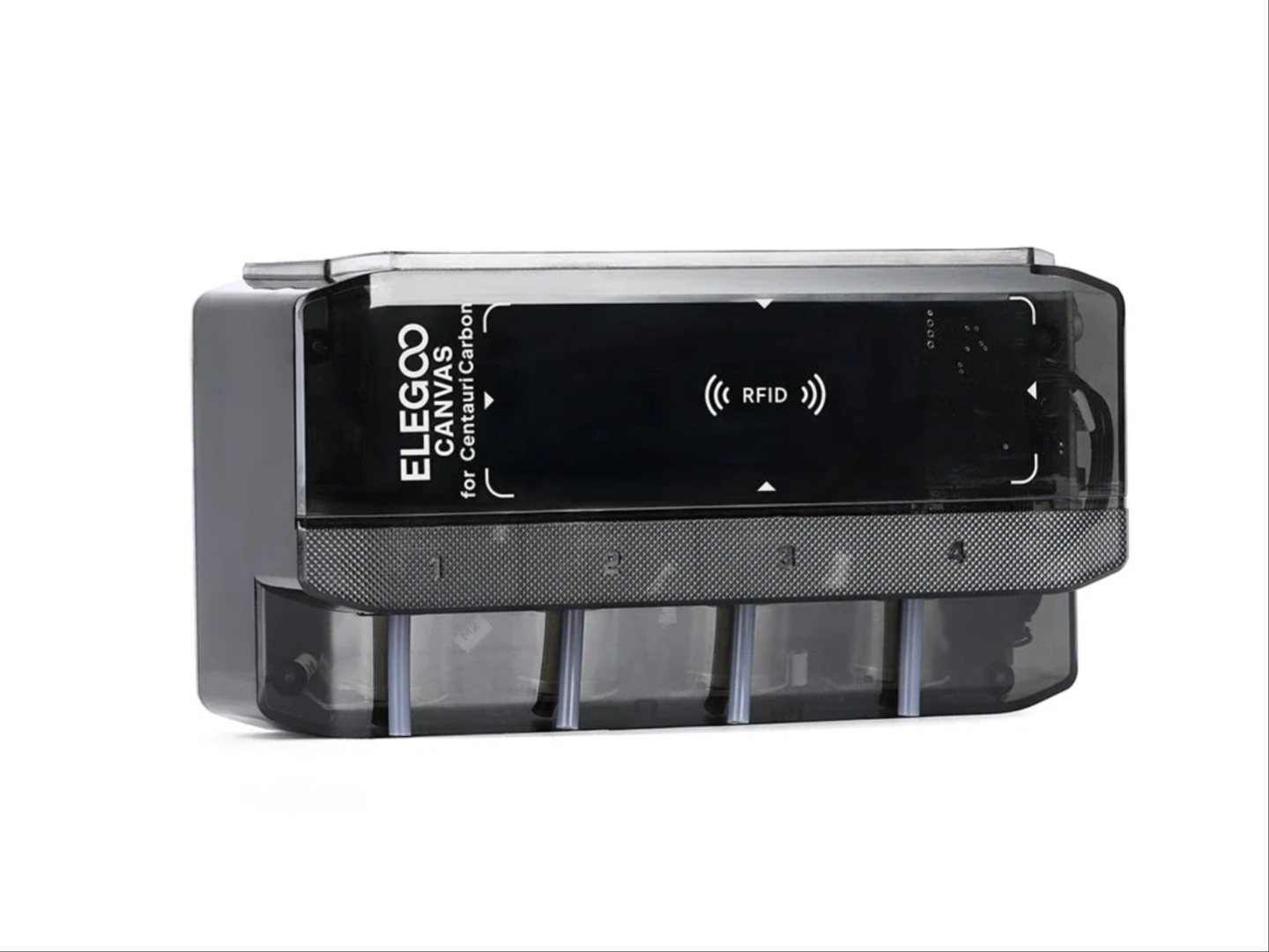 Das Zubehör erweitert den Centauri Carbon um Multicolor-Druck und weitere Funktionen. Neben der Möglichkeit, mit bis zu vier Farben zu drucken, bietet das Canvas-System eine RFID-Filamenterkennung, einen Verhedderungsschutz und eine automatische Nachfüllfunktion.