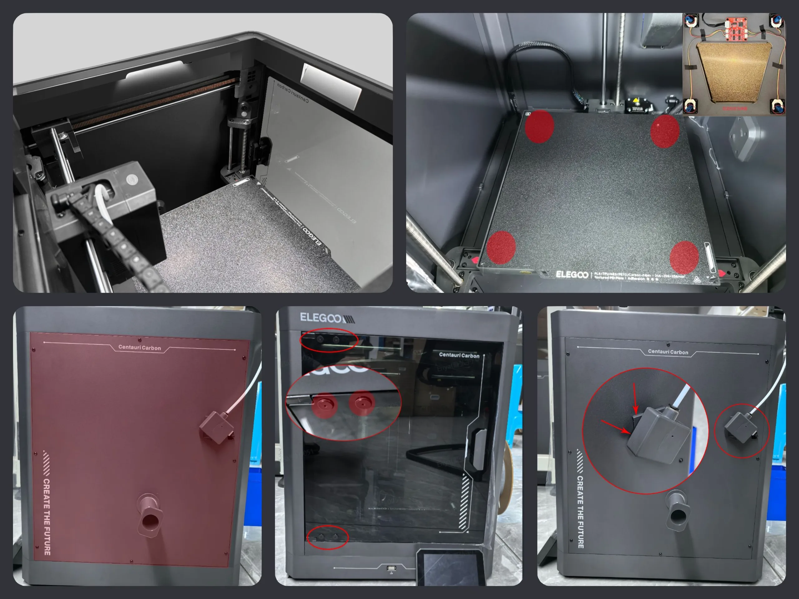 Ein besonders umfangreiches Paket an Verbesserungen wurde dann am 30. Mai 2025 vorgestellt. Diese Revision zielt auf eine breite Optimierung von Haltbarkeit, Nutzerfreundlichkeit und sogar der Leistung ab. So werden nun Silikonpads zwischen Tür und Scharnier eingesetzt, um das Risiko von Transportschäden zu reduzieren. Um Verschleiß und Reibung am PTFE-Schlauch für das Filament zu minimieren, versieht Elegoo den oberen Rahmen mit einer Abschrägung. Ein interessanter Punkt für lärmsensible Nutzer ist die Integration von Schaumstoff im oberen Rahmen, was die Geräuschentwicklung während des Druckens optimieren soll – ein potenziell wichtiger Punkt, da die Lautstärke in unserem Test einer der größten Kritikpunkte war. Auch das Heizbett bekommt eine Überarbeitung: Nylon-Abstandshalter werden durch Federn ersetzt, um die Nivellierung zu verbessern. Selbst die Bauplatte wurde optimiert, indem nicht nur der Siebdruck geändert, sondern auch ihre Dicke von 0,4 mm auf 0,5 mm erhöht wurde, was der Druckqualität zugutekommen soll. Des Weiteren erleichtern nun zwei zusätzliche Blechteile am Filamentsensor das Laden des Materials. Schließlich wurde auch die Seitenwand auf der Seite des Filamenthalters für mehr Stabilität von 0,6 mm auf 0,8 mm verstärkt.