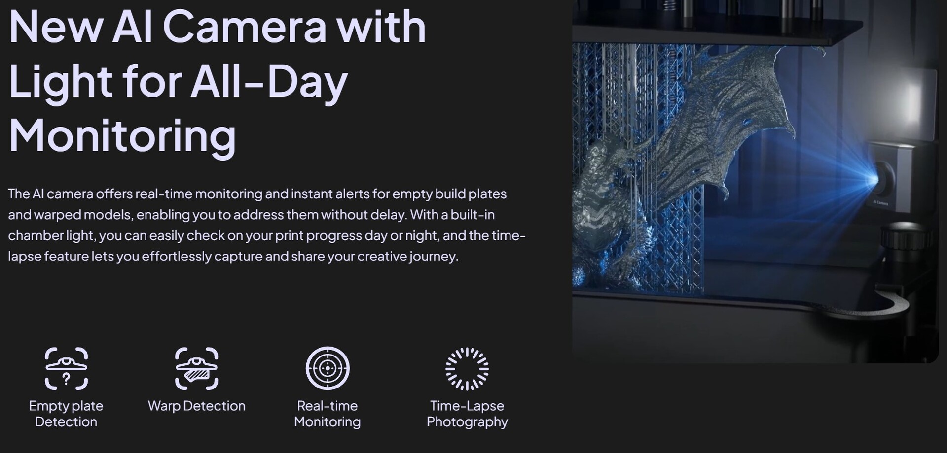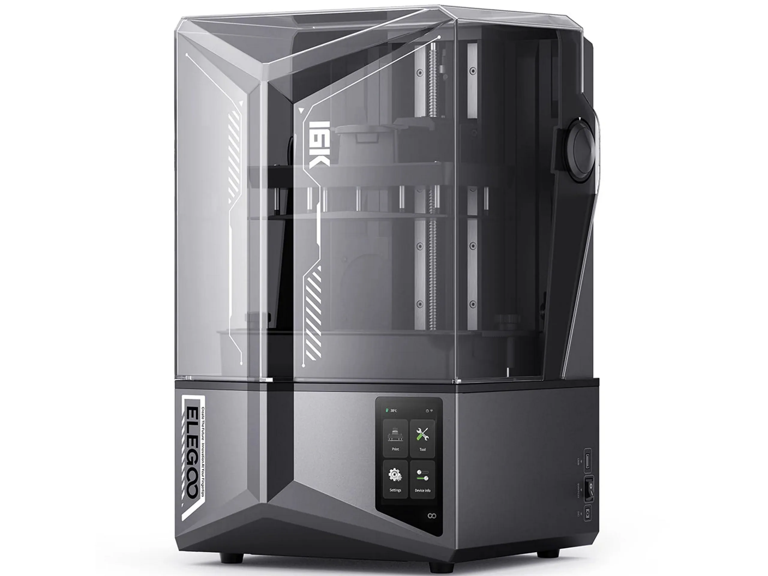 Auch die 16K-Version des Druckers bietet nach wie vor einen Bauraum von 211,68 x 118,37 x 220 Millimeter, allerdings gibt es auch etwa eine neue KI-Kamera mit einer Beleuchtung, womit sich der Druckvorgang überwachen lässt. Der Tank für das fotosensitive Harz bietet nun eine Temperierung auf 30 °C. Das Leveling erfolgt automatisch, womit sich Nutzer mit diesem zwar nicht besonders anspruchsvollem, aber mit Aufwand verbundenen Prozess der Anpassung an die Druckplatte nicht befassen müssen. Es handelt sich um ein mehr oder weniger geschlossenes System, nutzbar ist das Elegoo Mars Mate-Luftfiltersystem, welches flüchtige, organische Substanzen deutlich reduzieren soll. WiFi, USB und auch ein Touchscreen sind vorhanden.