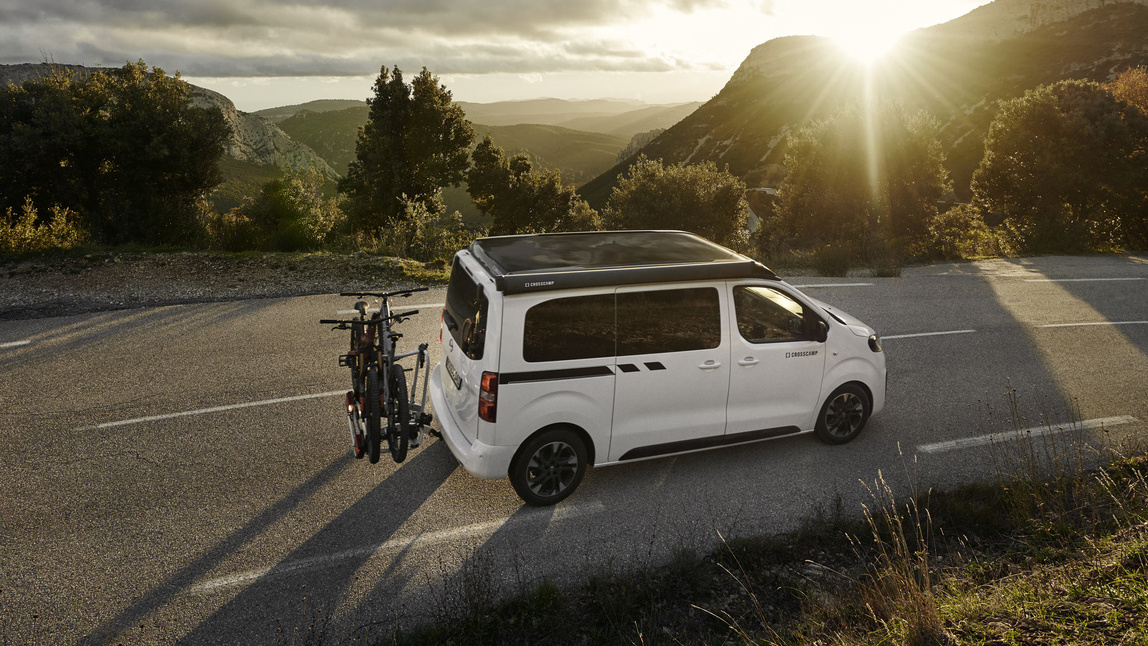 Der auf der Messe gezeigte Crosscamp Flex E-Camper basiert auf dem Opel Zafia-e Life mit 75-kWh-Batterie. Um die Reichweite der Antriebsbatterie nicht einzuschränken, versorgt eine zusätzliche Aufbaubatterie mit einer Kapazität von 95 Ah die Verbraucher an Bord, wie Licht, Kühlbox oder USB-Steckdose zum Laden von Smartphones oder anderen elektronischen Geräten.