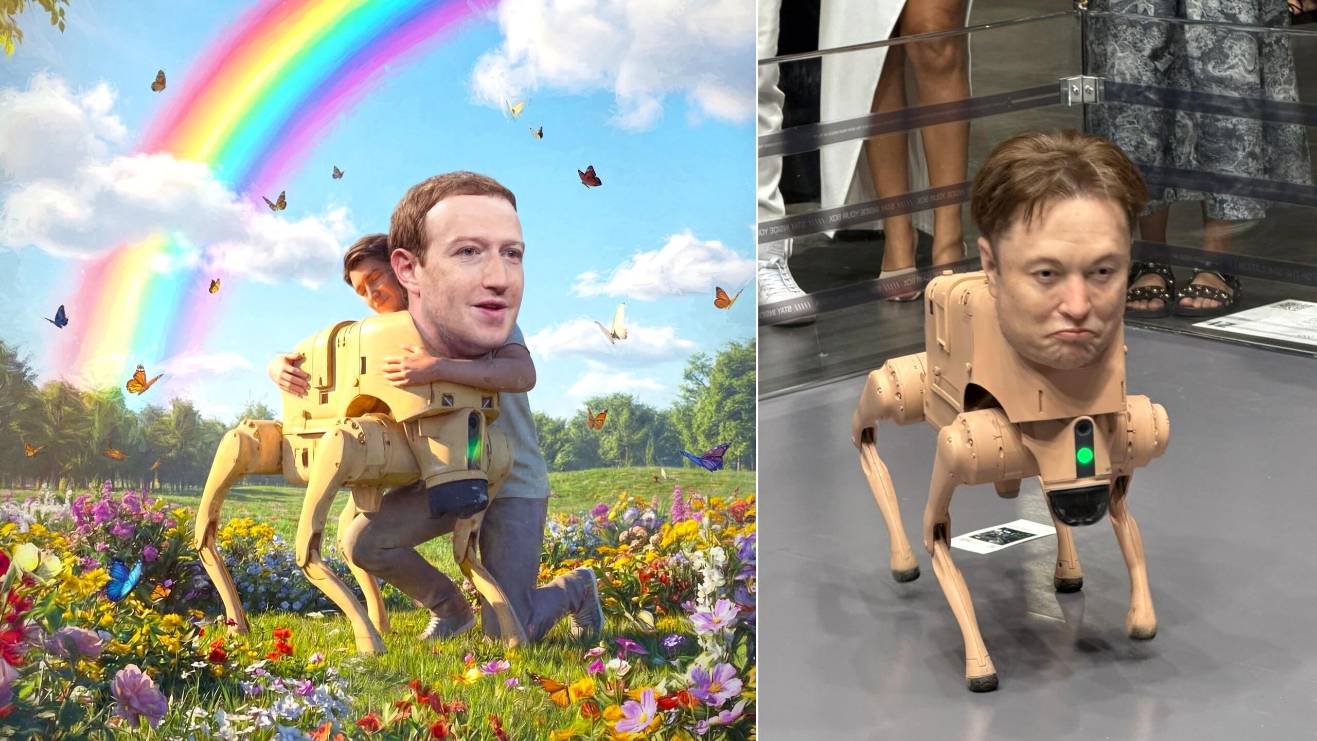 Die Videos gingen diese Woche um die Welt, sogar in Chinas Weibo-Netz haben wir sie gefunden. Auch soziale Netze westlicher Prägung sind voll mit den Roboterhunden, die das Gesicht prominenter Persönlichkeiten tragen, allen voran Elon Musk sowie Mark Zuckerberg, zwei der reichsten Menschen aus dem US-Amerikanischen Tech-Space. An dieser Stelle könnte man schon vermuten, dass es sich um eine aufwändige Kunst-Installation handelt und tatsächlich sind diese Robot-Dogs live im Rahmen der Art Basel 2025 in Miami Beach zu bewundern, die am heutigen 7. Dezember zu Ende geht.