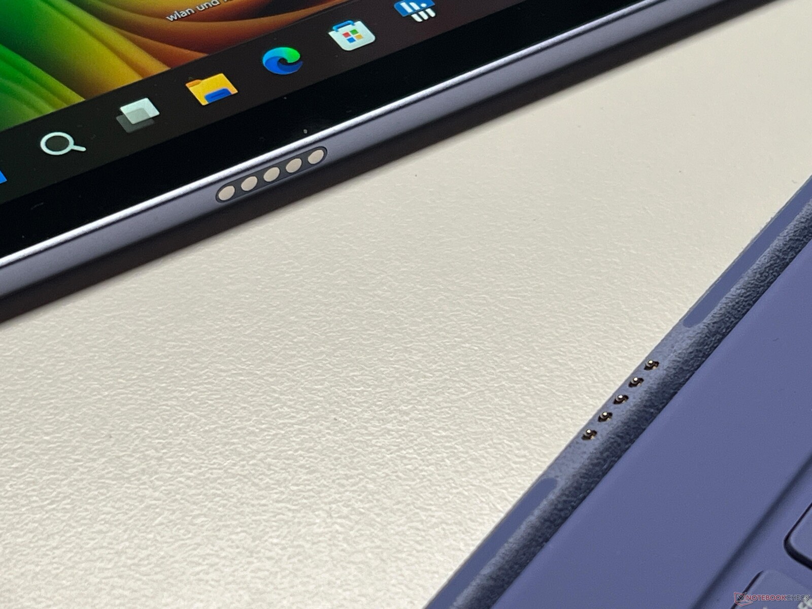 Zu den Nachteilen gehören die fehlenden Wartungsmöglichkeiten (RAM, SSD), die abgespeckten Anschlüsse (nur 2x USB-C 3.2 Gen.2) und auch die neue Befestigung für den optionalen Eingabestift. Beim größeren Surface Pro 13-Zoll gab es eine Ablage im Tastaturcover, nun gibt es eine magnetische Befestigung auf der Rückseite des Convertibles. Die magnetische Verbindung ist zwar relativ stark, doch wirklich sicher ist der Stift beim Transport nicht und man kann das Convertible auch nicht gerade auf den Tisch legen.