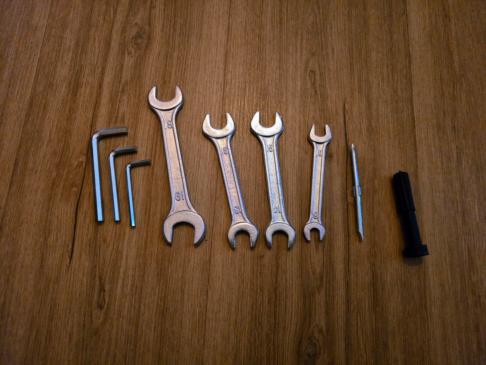 Das mitgelieferte Werkzeug reicht aus, um alle Montageschritte zu erledigen, es ist allerdings von einfacher Qualität. Die Lenkstange muss zusammengesetzt und mit dem Rahmen verbunden werden. Für die Montage des Gelenks muss ein Platzhalter demontiert werden - das steht jedoch nicht in der Anleitung, sondern muss logisch erschlossen werden.
