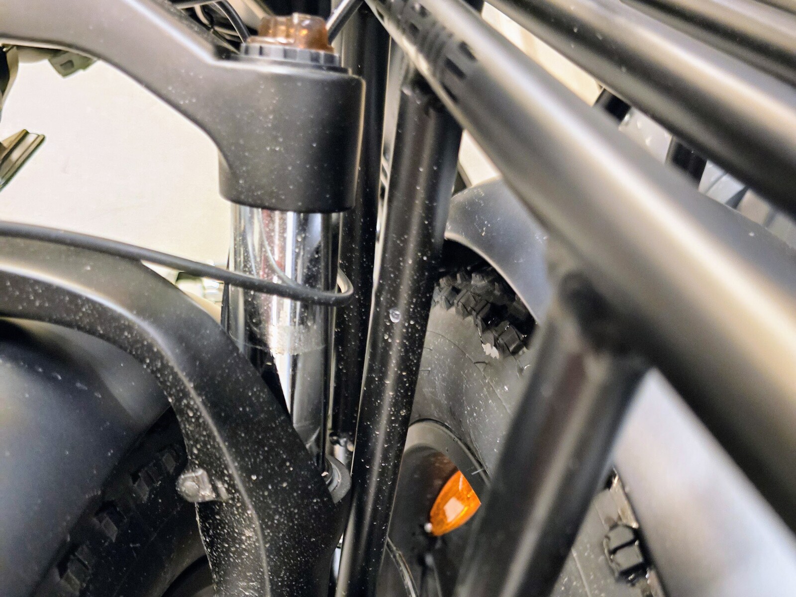 Insgesamt legt der Hersteller großen Wert auf Fahrkomfort. Dafür sorgen die Federelemente in Verbindung mit den Ballon-Reifen. Zwar ist der hintere Dämpfer nicht einstellbar, mit dem Fahrergewicht von 85 Kilogramm kommt er aber gut zurecht. Im Test schlägt das Element nicht durch. Auch unter Last neigt die Konstruktion selbst bergauf kaum zum Wippen - zumindest bei Temperaturen um den Gefrierpunkt.