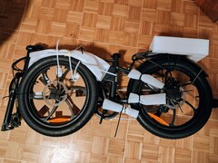Obwohl die Verpackung für ein Klapprad groß ausfällt, sind noch einige Montageschritte notwendig. An der Gabel müssen Licht, Schutzblech und Vorderrad montiert werden. Die Achse steckt noch nicht im Laufrad und muss noch mit Muttern und Distanzstücken bestückt werden. Sie ist zudem komplett fettfrei.