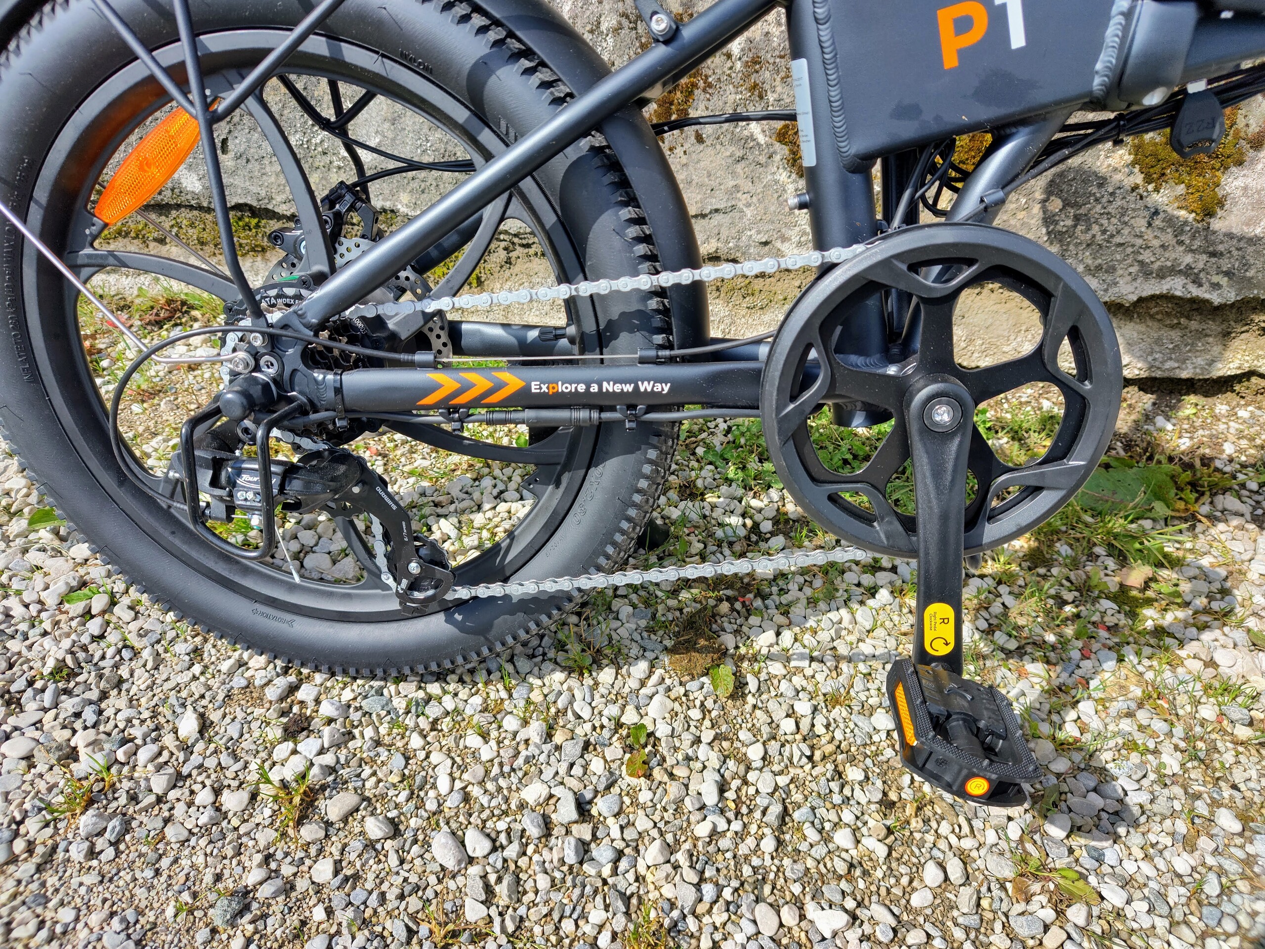 Gelungen ist die Übersetzung des P1. Mit den sieben Gängen und Motorkraft werden auch mittelschwere Anstiege problemlos bezwungen. In der Ebene ist im größten Gang auch Pedalieren bei 30 km/h möglich. Die Schaltwege sind zwar etwas lang, davon abgesehen funktioniert die Kettenschaltung problemlos und sie ist ab Werk sauber eingestellt.