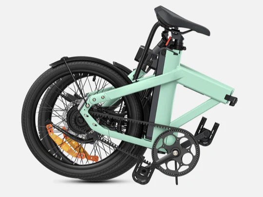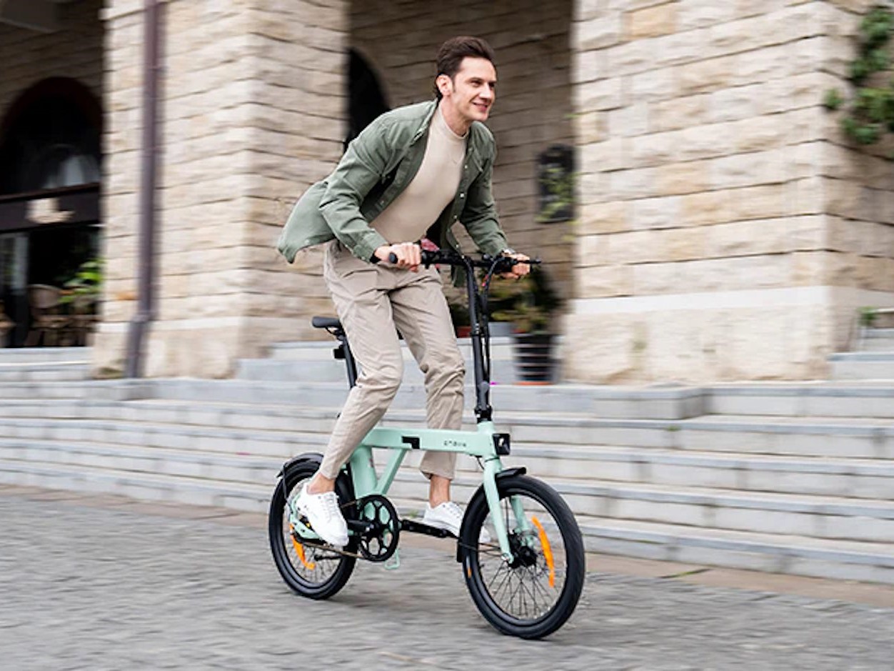 Aufgezogen sind 20 Zoll große und 1,95 Zoll breite Reifen. Der Akku besitzt eine Kapazität von 345,6 Wh, die maximale Reichweite wird mit 100 Kilometern angegeben. Das Fahrrad bringt 18,5 Kilogramm auf die Waage, was für ein Klapprad allerdings nicht unbedingt ein extrem geringes Gewicht darstellt. Innerhalb von nur 10 Sekunden soll sich das Fahrrad zusammenklappen lassen, im zusammengeklappten Zustand ist dieses auch schiebbar.